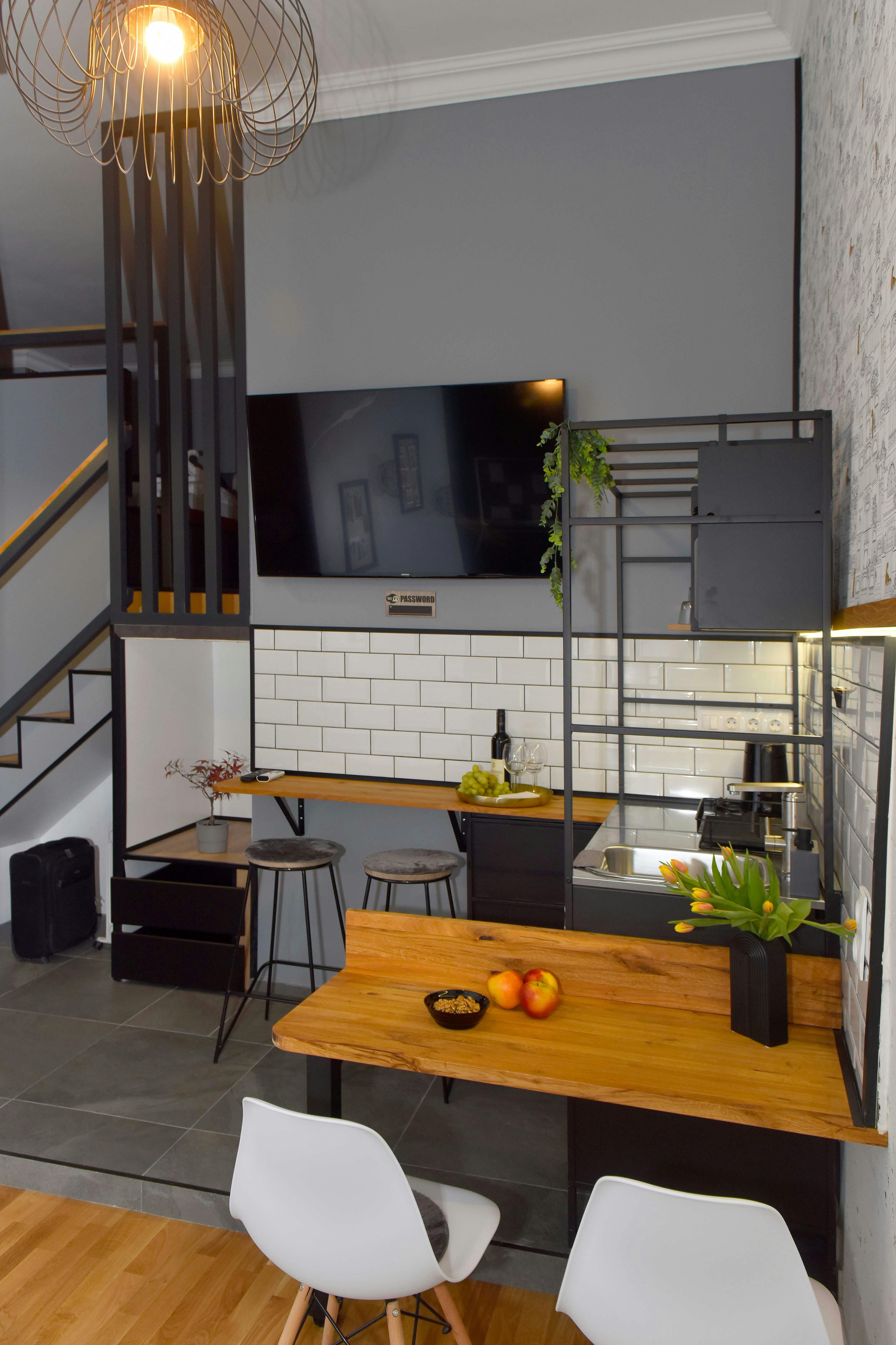 This cozy and stylish loft studio apartment is located at 1056 Budapest, Váci utca 78–80, in the heart of downtown, offering the perfect combination of comfort and convenience for mid-term stays. The apartment features a smart layout with a gallery (mezzanine) sleeping area, creating a spacious and airy atmosphere while keeping the living space practical and comfortable. The lower level includes a bright living area with a sofa, dining space, and a fully equipped kitchen with all essential appliances (stove, fridge, microwave, kitchenware). The modern bathroom comes with a shower and washing machine. The sleeping area on the loft level provides a comfortable double bed and additional storage space. The security deposit is one month’s rent for tenants staying 1–3 months, and two months’ rent for tenants staying longer than 3 months. Check-in and check-out are available on weekdays between 9:00 AM and 5:00 PM. Outside of these hours, a €20 surcharge applies. Weekly cleaning service is included in the rental price. The exact time of cleaning can be arranged directly with the reception on site for your convenience...