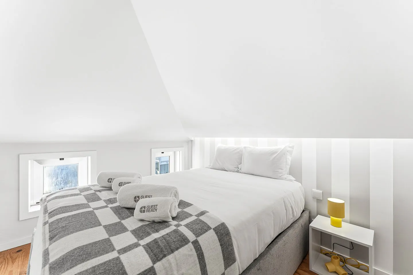 Welcome! This modern 34m2 studio with a terrace, decorated to provide comfort and make you feel at home, is the perfect starting point to explore the city of Porto and its attractions. Ideal for couples, this studio features an open-plan layout with a mezzanine. The living room, located on the lower floor, is equipped with two comfortable armchairs and a TV, creating a cozy environment to relax, also featuring a dining table by the window. The kitchenette is equipped to prepare meals and features a stove hob, microwave, fridge, and coffee machine. For added convenience, there is also a washing machine available in the storage area. Access to the private terrace is directly from the living room, where you can relax outside. The terrace has decking and is equipped with a table and chairs, ideal for enjoying sunny days. The sleeping area is located on the charmingly decorated mezzanine. It is equipped with a comfortable double bed and cabinets for your belongings, benefiting from natural light from the upper windows. The bed comes with quality linens to ensure maximum comfort, and the bathroom features all amenities, including a shower, towels, and toiletries for your convenience. The space is always professionally cleaned. The studio is located on the second floor, and access is exclusively via stairs, making it unsuitable for people with reduced mobility. Enjoy your stay...