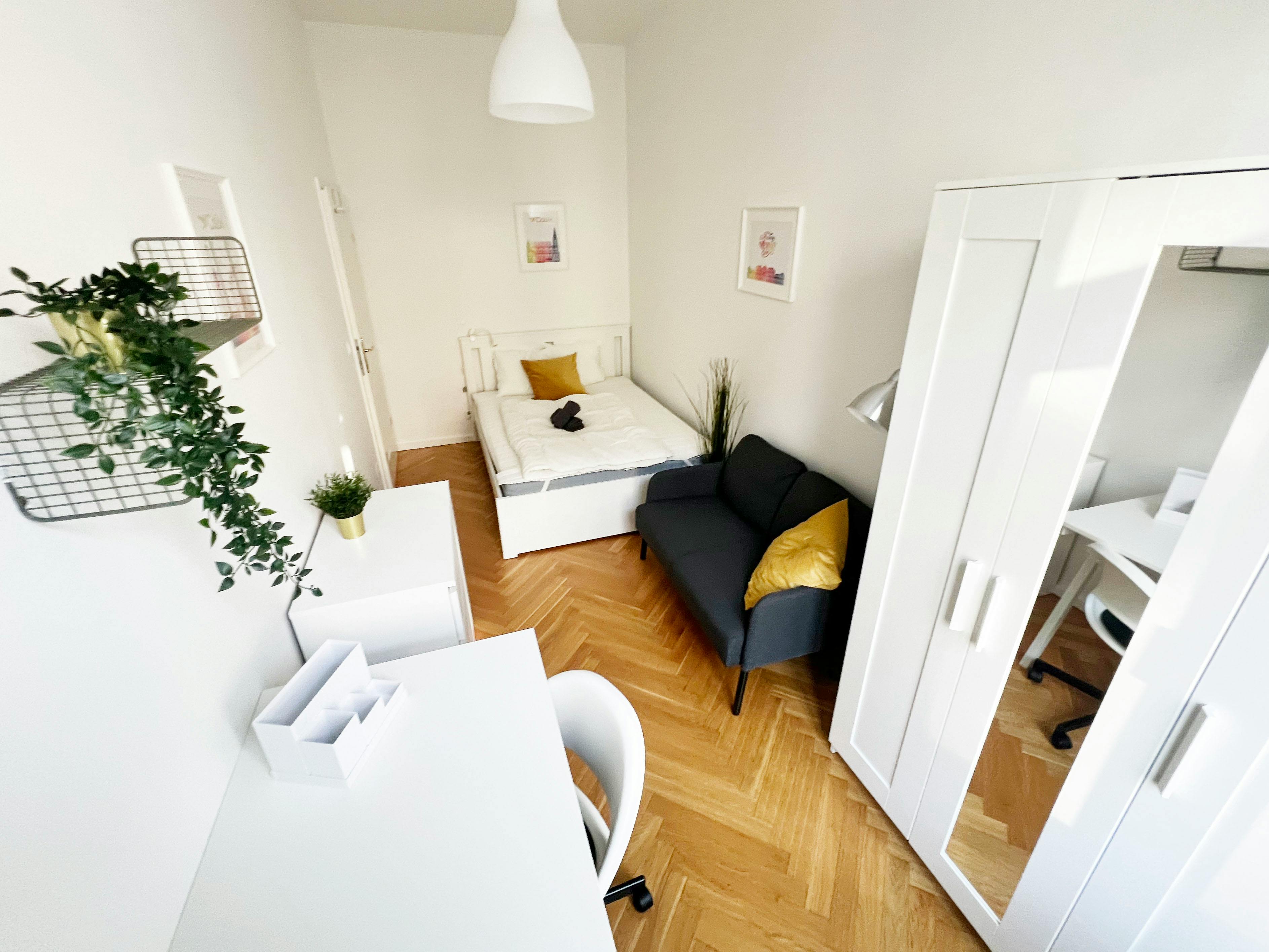 Beautiful room (number 1 in the floor plan) in a super neighborhood in the fancy 18th district. The flat has 4 rooms and is fully refurbished with highest standards. Everything was done in a very high quality and you will be able to enjoy this to the fullest! Everything is included in the price, so you can move in without worrying about anything. With a comfortable bed, fresh linen, wardrobe and a workspace, washing-machine, hair drier, and so on, you will have everything you need and more. Everything (heating, electricity, internet etc.) is included in the price, so you can move in directly without worrying about anything. The flat is very light and has a big and spacious kitchen where you can kick back with your flatmates and cook together. There is also a space to store your bike on the property. The area around Alsergrund is beautiful and the Volksoper is right next to it. The neighborhood provides plenty of shopping opportunities and excellent connections to public transport and the very city center. Connection to public transport: The flat is perfectly connected with the Metro stop U6 “Währinger Straße Volksoper”. It is only 400m walk away from the flat and will take you: in 5min to the City Center in 10 min to UNI Wien in 25 min to TU Wien The shared flat (4 rooms) and the area are ideal for all city newcomers to meet new people and to have a great time in Vienna. MOVE IN AND ENJOY THIS INCREDIBLE FLAT �...