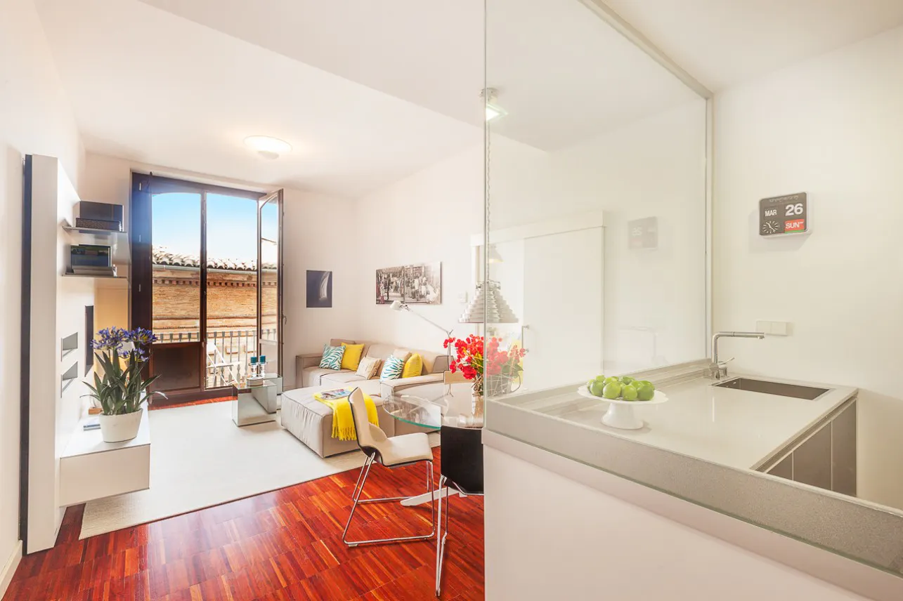 Apartamento 1 de un dormitorio CONDICIONES DE ALQUILER: - Alquiler mensual: (1.750€) - Fianza: 1 mes de fianza (se devuelven al final del contrato): (2.000€) - Suministros de agua, luz, gas e internet: incluido en el precio - Servicio de administración: (1.750€) DESCRIPCIÓN DEL APARTAMENTO: Ubicado en un edificio con ascensor, se distribuye en 55 metros cuadrados con 1 dormitorio y 1 baño completo. El salón está en el mismo espacio que la cocina americana, equipado con todo el mobiliario (sofá, mesa de centro, mueble de televisión, TV, mesa de comedor con sillas). La cocina americana en el mismo espacio amplio con el salón, está en muy buen estado, con todos los electrodomésticos (frigorífico, vitrocerámica, campana extractora, horno, microondas, lavavajillas, lavadora). Un dormitorio doble con cama de matrimonio con todo el mobiliario, con ropa de cama incluida. Un baño completo con todos los sanitarios (mueble de lavabo con espejo, ducha con mampara). CARACTERÍSTICAS DE LA VIVIENDA: - Aire acondicionado y calefacción por conductos - Suelos laminados - Ventanas climalit UBICACIÓN: Magnífica vivienda ubicada en el corazón del centro de valencia. Rodeada de todo tipo de comercios, bares, restaurantes, supermercados y zonas de ocio. Muy bien comunicado con medios de transporte...