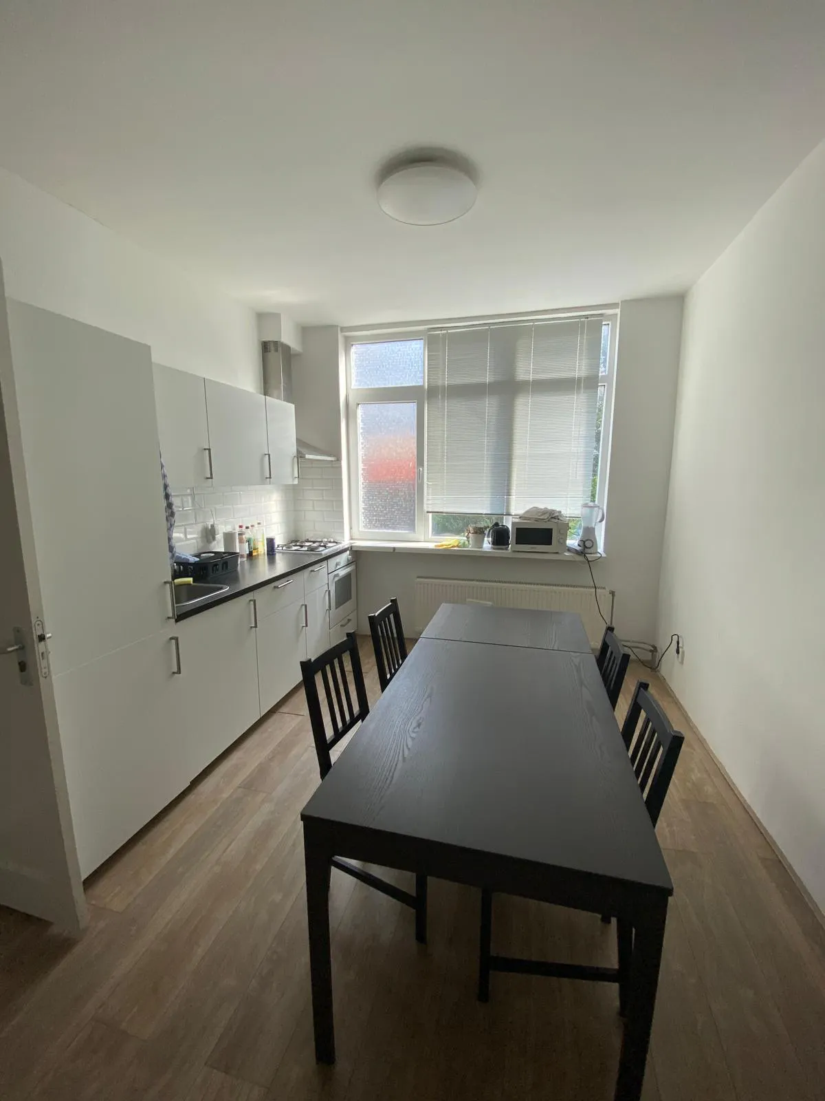 SHORT STAY APARTMENT AVAILABLE FOR A MAXIMUM DURATION OF 6 MONTHS! ONLY SUITABLE FOR 1 PERSON Lovely and furnished 1-bedroom apartment located in central Schiedam and within 5 minutes of the trainstation, with also a bus- and tram connection. The property is also convieniently located regarding the highway A20 and A13 so for example the Botlek is easy to reach. Lay out Entrance in shared hallway with access to the staircase which will lead you to the second floor. Living room with open kitchen which is equipped with a gashob, extractor, oven and fridge with separate freezer. From the living room there is access to the bedroom which has a double bed and wardrobe.Onder the floor downstairs you have 2 different room. In the bathroom you can find a shower cabin, sink and the toilet...