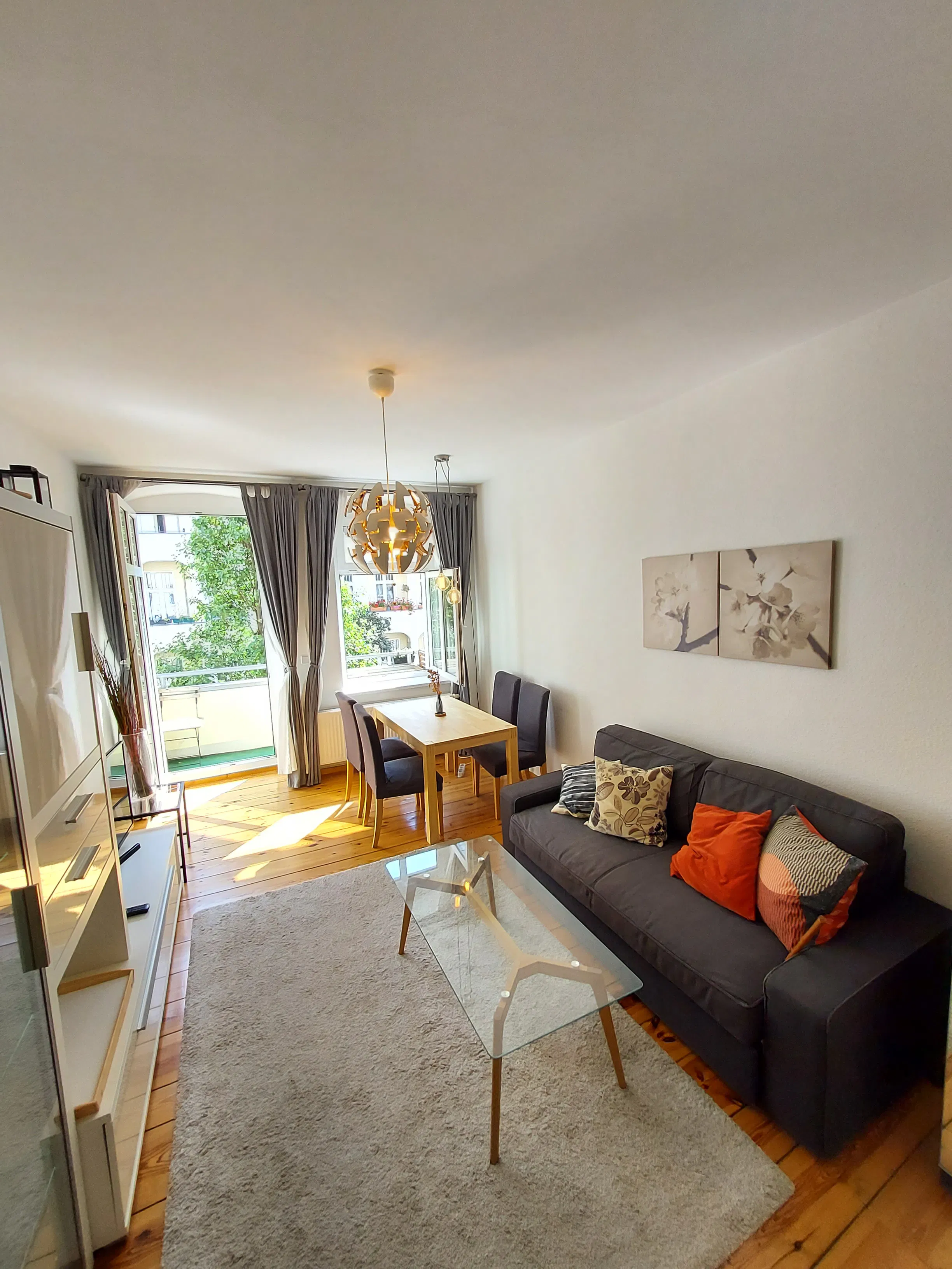 *Deutsche Beschreibung unten The flat is renovated. There is a bath with italien tile and high qulity fittings and a Duo bathtub. The washingmachine/dryer- Tower is new and from BOSCH.(At the Photos is also the old washing maschine ). Under the Tower is a podium with drawer . In the middel between the washing maschine and the dryer is a extendable work surface for folding clothes. All in the kitchen (Induction hob,ofen ,dishwasher ,freeze device -fridge,touster ,coofee-machine are in form) All for daily using in the kitchen is there. Six part dishes and cutlery also. There is one oak bed in the sleeping room 140x200cm and a oak writing table. At the "balcony -room" is a sleeping sofa with 140x200 cm. A tv from the company PANASONIC is there. In the other room is a oak bed and a writing tabel. In the floor is a shoe-wardrobe and a cupboard with a hoover from SIEMENS. A seller to close is there. PLACE: The flat is in the middel from Friedrichshain next from Simon-Dach-Strasse. Frankfurter Allee ,Warschauerstrasse and Boxhagener Platz are in some minutes by foot reachable. A lot of pups and Restaraunts are directly in front of the door. All puplic transport are very near. 5 MINUTES to S-U Station WARSCHAUERSTRASSE. 1Minute to the Tram. The property is and will be very well maintainded and has plenty of storage for bicycles in the backyard. This is the Price for 2 Peopel. For each person extra it is 70 Euro. If you need a cleaning lady i can introduce you to her. DEUTSCH: Die Wohnung ist renoviert. Es wurde ein neues Bad eingebaut . Italienische Boden bzw. Wandfliesen wurden neu verlegt. Eine Duo-Badewanne mit faltbarer Glas-Duschwand,Waschbeckenunterschrank mit Waschbecken und ein Wandschrank wurden ebenfalls neu installiert. Alle Amaturen sind hochwertig. Ein Waschmaschinen/Trockner -Turm von BOSCH mit darunterliegendem Podest in dem sich eine Schublade befindet sowohl auch eine mittige ,ausziehbare Arbeitsfläche zwischen Trockner und Waschmascine wurden neu installiert. (Auf ein paar Fotos ist noch die alte Waschmaschine) Es wurde eine neue Einbauküche eingebaut. Alle Küchengeräte wie das Induktionskochfeld,Backofen,Spülmaschine und der Kühlschrank mit Gefrierfächern,Toaster,Kaffemaschine sind vorhanden. Alle Küchenutensilien zum Küchengebrauch sind vorhanden. Ein sechsteiliges Serviece läßt eine größere Anzahl von Besuchern zu. In beiden Zimmern steht ein neuer ,sehr geräumiger Spiegelzimmerwandschrank mit vier schrankbreiten Schubfächern. Im "Balkonzimmer " befindet sich ein ausziehbares Schlafsofa mit Lattenrost (140cmx200cm) und Matratzenüberzug , so dass die Möglichkeit besteht auf diesem auch über einen längeren Zeitraum erholsam zu schlafen. Ein Tv von der Firma Panasonic steht zur Verfügung. Im zweiten Zimmer befindet sich ein Sofa sowie ein Eichenschreibtisch und ein Eichenbett mit einer hochwertigen Kaltschaummatratze (140cmX200cm). Der Flur ist aus Eichenparkett . Es befindet sich ein Schuhschrank sowie ein Haushaltsschrank mit Staubsauger der Firma Siemens. Eine kleine gepolsterte Sitzmöglichkeit mit einer Schuhablage ist ebenfalls vorhanden. Ein abschließbarer Kellerbereich steht zu Verfügung Lage: Die Lage ist ideal ,da sich die Wohnung mitten im Friedrichshainer Süd Kiez befindet . Die Frankfurter Allee ,Warschauer Straße und der Boxhagener Platz sowie die öffentlichen Verkehrsmittel sind nur ein paar Gehminuten entfernt . Die nächsten Supermärkte befinden sich in unmittelbarer Nähe. Unzählige Restaurants und Ausgehmöglichkeiten jeglicher kulturellen Art befinden sich gleich "um die Ecke". Die Immobilie ist gepflegt und besitzt zahlreiche Abstellmöglichkeiten für Fahrräder im Hinterhof. Dies ist der Preis für 2 Personen. Für jede weitere Person werden 135 Euro extra erwünscht. Eine Putzfrau kann ich Ihnen bei Bedarf vorstellen...