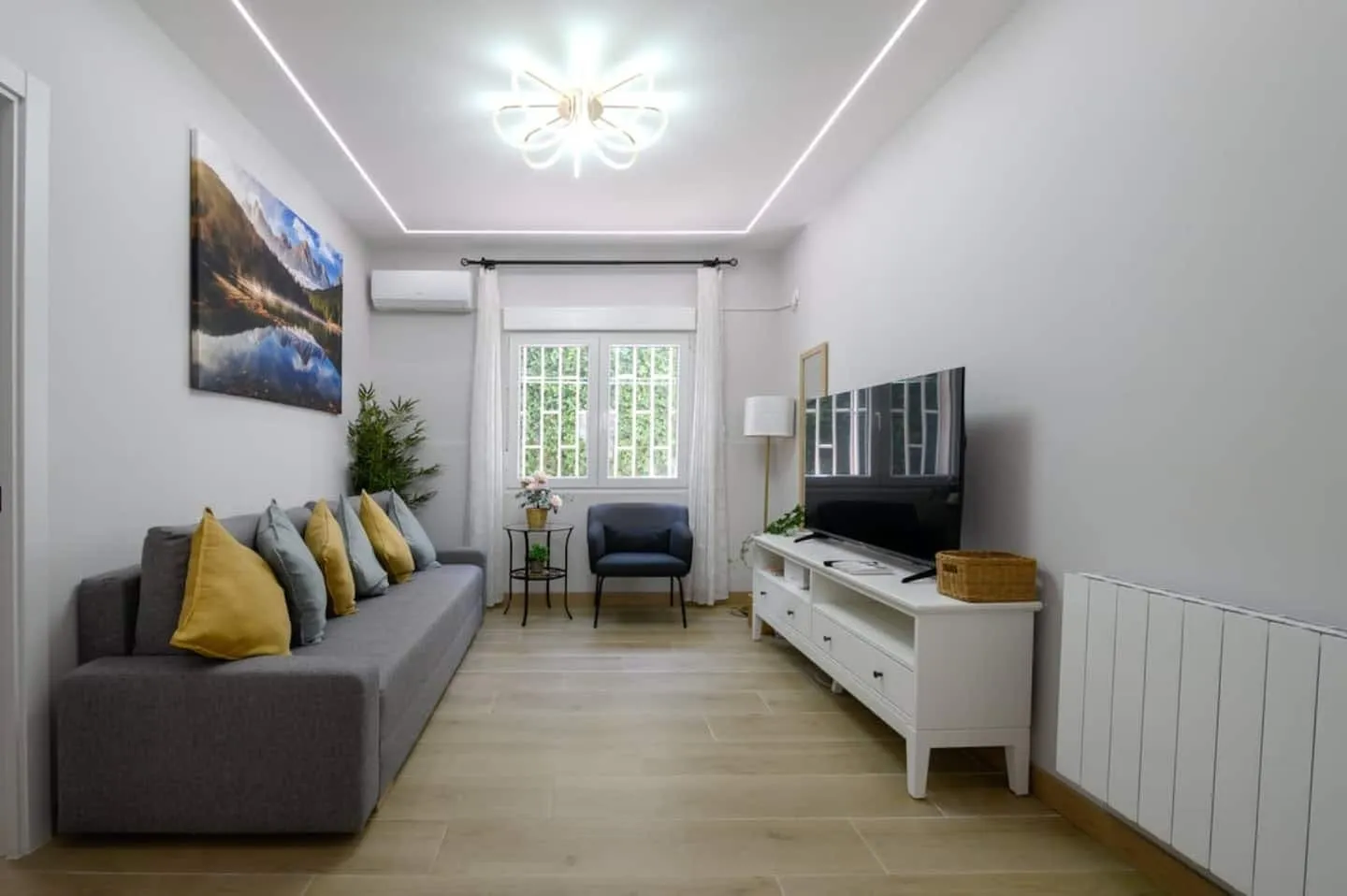 💢💢💢 This three-bedroom apartment is ideal for families and friends. Located near Madrid Barajas Airport and the Plenilunio shopping center, with Canillejas metro station just a 3-minute walk away, it is well connected for exploring Madrid comfortably. It has everything you need for a pleasant stay, close to restaurants and shops. Welcome! This charming 81 m2 apartment is perfectly located near Madrid-Barajas Airport, as well as shops, supermarkets, and the Plenilunio shopping center. The living room features a comfortable sofa to relax on, a TV to enjoy your favorite shows, and a dining table that's perfect for sharing meals in good company. The open-plan kitchen is fully equipped with everything you need to prepare delicious home-cooked meals, including an electric cooktop, oven, microwave, coffee maker, and all essential utensils and cookware. For your convenience, there’s also a washing machine available. The apartment has three cozy bedrooms: one with a double bed and wardrobe, and two others with two single beds each—one of these also includes a crib, perfect for families with young children. All beds come with clean linens. The bathroom is stocked with fresh towels and complimentary toiletries, so you have everything you need to refresh and feel at home. For your comfort and peace of mind, the apartment is professionally cleaned before each stay. Enjoy your stay! Note: This apartment is for temporary rental – not available for tourist stays. To complete the booking, it is essential to sign a seasonal rental agreement and provide proof of the reason for your stay. After booking, you will receive a contract to sign. Without the signed agreement, the reservation will be canceled with no right to a refund. Guest access Guests will have access to the entire home! Other things to note Check-in can be done from 3 PM, pending availability and confirmation. Note: This apartment is for temporary rental. Not available for tourism purposes. Signing a contract is mandatory We provide the basic amenities for the first use: samples of shower gel, shampoo, soap, toilet paper, kitchen roll, sponge, dishwashing products and bin bag. Please let us know if you need cleaning or extra linen, and we will gladly provide it at an additional charge. There is a zero-tolerance policy for smoking on the property. If our team discovers evidence that this rule has been breached (e.g., smoke smell, ashes, butts, etc.), we fully reserve the right to charge a €200 smoking fee at a minimum. -Please note that for stays longer than 30 nights, a fair use policy of the utilities will apply with a limit of 80€. -Extra keys: 20€ (extra pair of keys when available, lost keys or service to open the door during your stay). -Extra cleaning with linen: the price of a cleaning fee. -Extra Clothing: 30€ (Towels and sheets for 2pax, i.e. when the sofa bed is not included). Madrid, Comunidad de Madrid, Spain Arround this area you’ll find top attractions like the Wanda Metropolitano Stadium, perfect for football fans. The area offers easy access to Parque El Capricho, a hidden gem with beautiful gardens. Local restaurants serve delicious Spanish tapas, try nearby spots for authentic paella and churros! Getting around The property is easily accessible by public transport and car. The nearest train station, Canillejas, is just a 3-minutes walk. The Barajas Airport is a 3-minute drive from the property. 💢💢�...