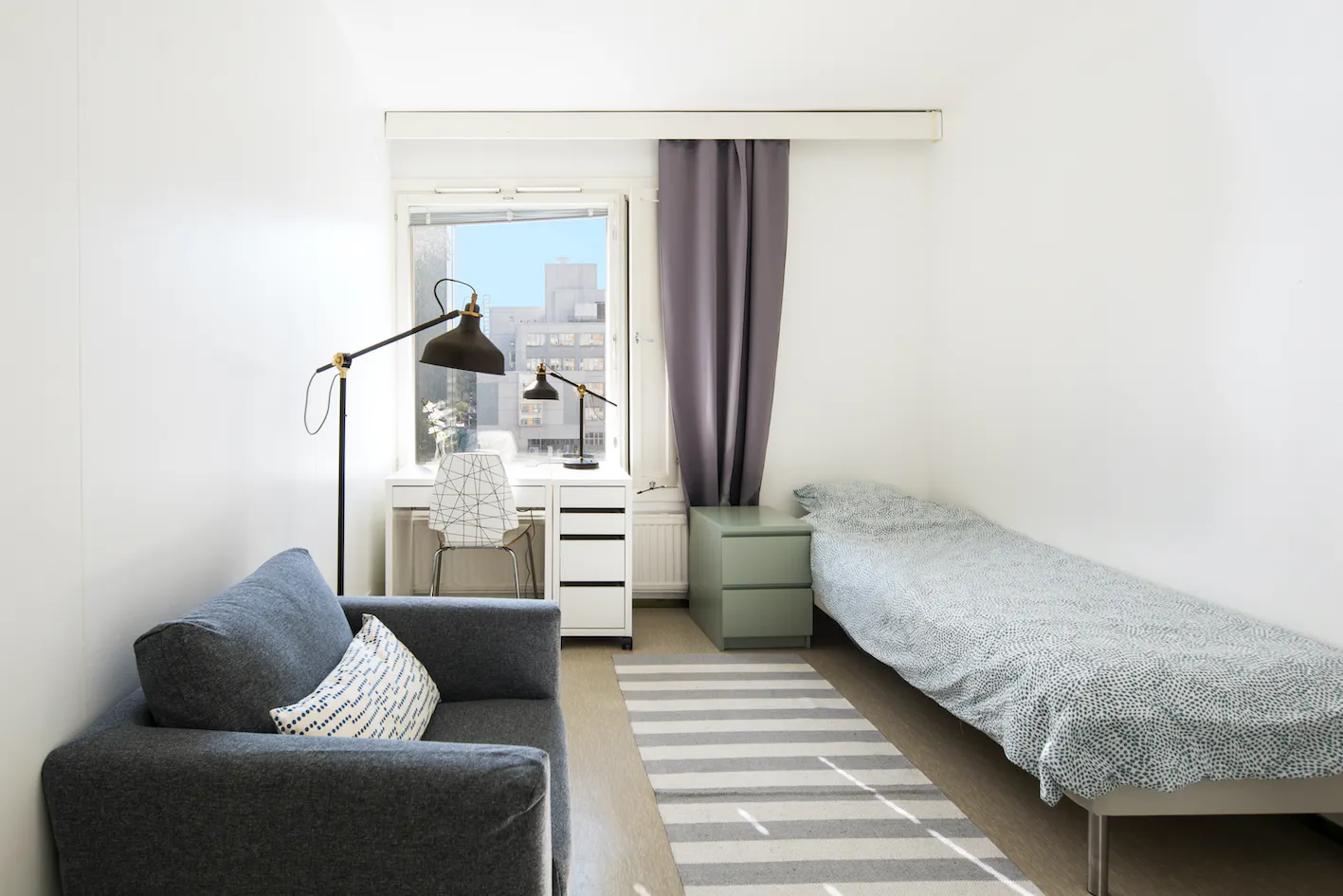 *** LOCATION, LOCATION, LOCATION *** *** All-inclusive rate: water, electricity, heating, internet *** *** Safe area close to city centre, excellent public transportation options *** *** We are a registered Finnish company with a superior customer service *** ROOM A stylish, furnished 10sqm room in a renovated building in Pasila, on the 5th floor. This room has Nordic-style furniture, everything you need for a comfortable daily life: a bed, night table, desk space, chair, lamp, wardrobes, window blinds, and bedlinen – you will have less to worry, and you can focus on getting the most out of your stay! APARTMENT & BUILDING This apartment has a fully-equipped kitchen to ensure you will be able to prepare your favorite daily meals. The fixtures include: • cooker/oven • microwave oven • fridge/freezer • washing machine • iron/board • coffee machine & electric kettle • kitchen utensils • vacuum cleaner • WiFi This high-rise building has an elevator, a sauna, and a laundry room. Extra luggage and belongings may be stored in the apartment’s dedicated storage space. Bicycles, and outdoor activity equipment have their own dedicated storage space. LOCATION & DISTANCES This apartment is very centrally located with its own character and commercial flavor. Total travel time to city Centre is 15mins. Bordering Central Park to the west, Käpylä to the North, Alppila to the South and Vallila to the East, Pasila is a commercially active area with wide selection of services. This is a safe Helsinki locality around the clock. Pasila is famous for Mall of Tripla – the largest mall in Northern Europe in terms of number of outlets. The mall is also a key hub for public transportation. There are over 250 stores including indoor surfing and volleyball, bars, restaurants and a movie theater. The mall is within a short walking distance from the apartment. Moreover, Helsinki Exhibition Center and Helsinki Arena – the largest event venues in Finland, are situated in this area. Pasila is also the home for high-quality Finnish education institutions such as Haaga-Helia University of Applied Sciences and Helsinki Business College. Transportation options are excellent and include busses, trains and trams. The area offers a wide range of services from grocery shops to sports facilities, which should cover your needs. Below a list of select local amenities along with estimated distances and travel times: • Central train station/city center – 3.7km / 15mins • Grocery shop/ATM – 150m / 2mins • Pharmacy – 700m / 9mins • Käpylä Swimming hall – 450m / 6mins • Haaga-Helia University of Applied Sciences – 800m / 10mins • Helsinki Business College – 700m / 8mins • Helsinki University – 4.4km / 28mins • Stadin Ammattiopisto – 600m / 7mins • Helsinki Arena – 1.5km / 14mins • Helsinki Exhibition Center – 650m / 7mins • Library – 650m / 8mins • Holiday Inn – 700m / 8mins • Hospital – 1.5km / 17mins • Dentist – 60m / 1mins POLICIES & DOCUMENTS REQUIRED • Passport / official ID of the tenant • Rent payment: 2nd of each month • Payment method: bank transfer BOOKING • All the payment information and fees over your stay are detailed here on HousingAnywhere • After the booking is completed, we will prepare your Tenancy Agreement • Keys will be delivered and arranged against the completion of payments • Your security deposit is refunded within 7 days after the tenancy agreement’s ending date. MOVE-IN • Keys will be delivered to our key service partner near the apartment following the completion of payments • You will be able to pick-up the keys at a time most convenient to you typically from 08:00 – 21:30 Monday to Sunday • You will need to prove your identity at the pick-up LANDLORD We are a registered Finnish company founded in 2005, specializing in fully furnished stylish private rooms in central locations with all-inclusive rates. We are the top advertiser in Finland with over 350 successful bookings through Housing Anywhere. We manage only our own properties. We are driven by passion to offer tenants around the world a simple moving process, superior customer service and an enjoyable stay. We have the honor to host +150 tenants annually in our apartments that are on average less than 15mins from Helsinki city center. Our team is dedicated of making your move-in as effortless and stress free as possible. Regardless of the tenure of your stay, we have the perfect option for you. We welcome you to join our community of international residents, and allow us to offer you a place to stay. We are looking forward hearing from you. *** Please be aware that HousingAnywhere is an online booking service, and the policy does not allow exchanging of contact information or apartment viewings. If you would wish to book an apartment through us, kindly send us a message or booking request, and we will address all your inquiries....