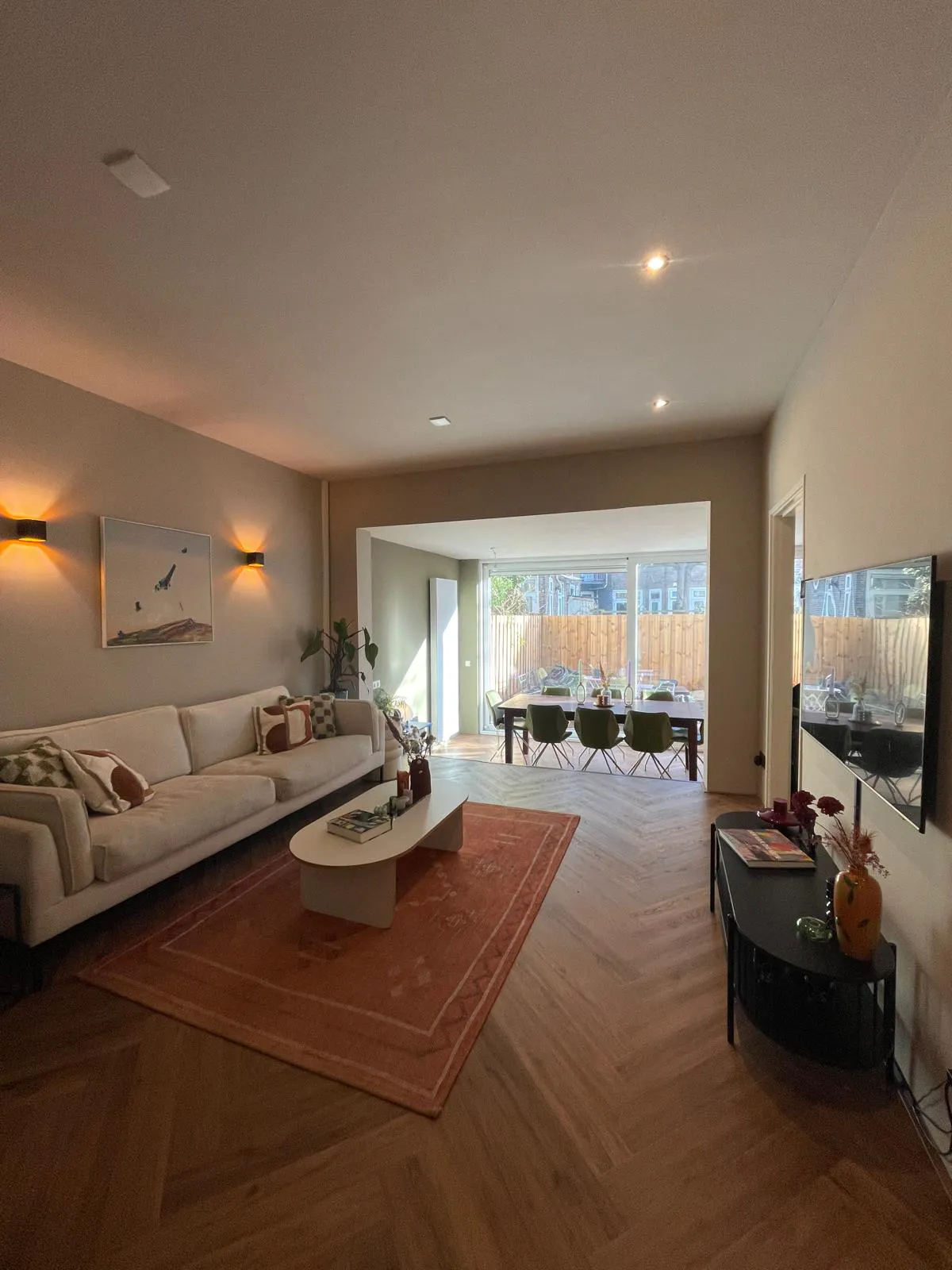 I am renting out my spacious yet cosy apartment in Amsterdam West from Mid-March! It’s a 2-bedroom 70m2 ground floor apartment with a big private backyard (45m2) and a big private frontyard (20m2)! Last year it’s been fully renovated with floor heating , new ceiling, extended, garden renovated, laundry machine, dryer etc. It is fully furnished so you’d be ready to move in straight away! The neighbourhood is awesome, just out of the city centre bringing you peace of mind while having nature at your disposal: Rembrandtpark is just a 2-minute walk and Vondelpark just a 10-minute walk away! Within 2 minutes you are on the highway so you skip the traffic jams in the city centre, which is really nice ;) It’s super connected in terms of public transport: there’s a tram/bus stop across the street that takes you to Amsterdam Central / Zuid / Sloterpark! The city centre is just a 5-10 minute cycle away and around the corner you have all supermarkets, cute coffee shops, lunch places at your disposal :)...