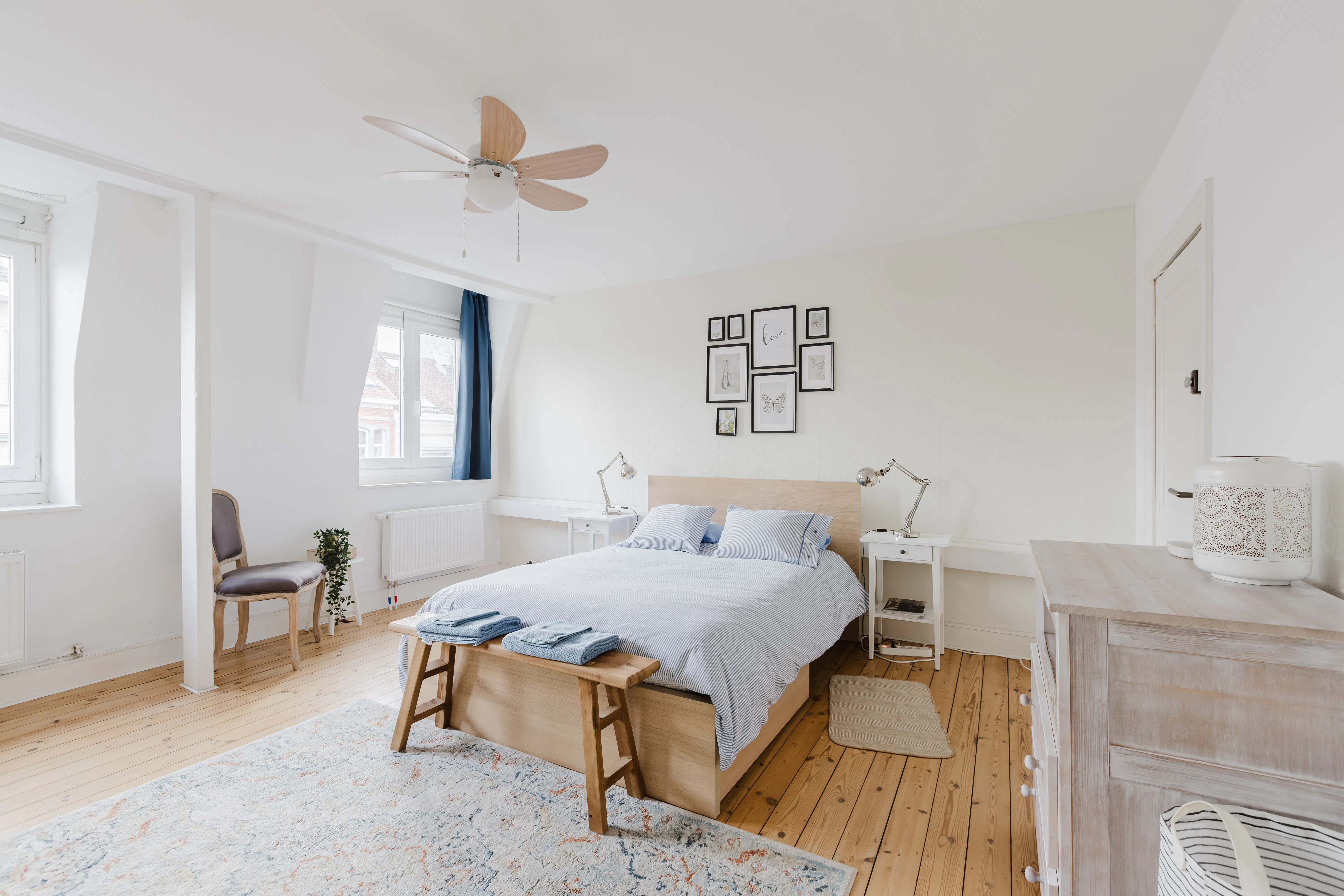 This bright, spacious bedroom is bathed in natural light, it features a plush bed for restful sleep, a cozy seating area for relaxation, and a dedicated workspace equipped with high-speed Wi-Fi. In the shared bathroom, you'll find plenty of storage space and a laundry area, making your stay even more comfortable. The fully equipped kitchen has everything you need to prepare your meals and, when the weather is warm, you can enjoy dining and relaxing on the spacious terrace. PLEASE NOTE: This is a room with a shared bathroom. It is shared with one other room...