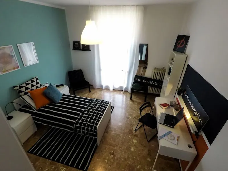 Zona Mompiano, posizione strategica e ambita, si affitta singola con balcone. La camera è dotata di letto singolo, armadio 3 ante, scrivania, comodino, tendaggi, specchio. I colori delle pareti favoriscono il buon umore e aiutano nello studio...