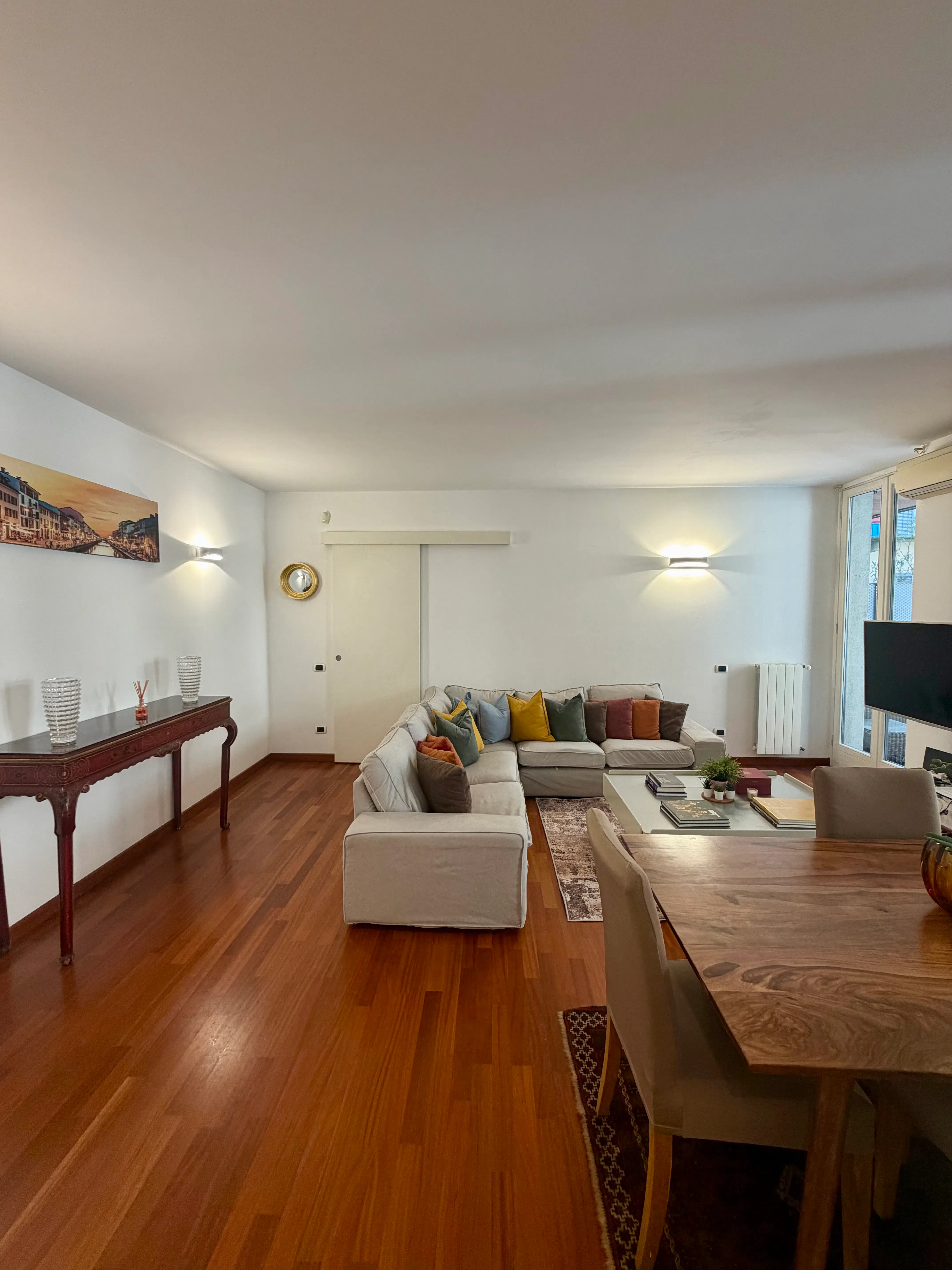 Splendido trilocale completamente arredato, nel cuore del quartiere Navigli-Darsena, uno dei quartieri più cool e vivaci della città. L'appartamento è composto da soggiorno con zona pranzo, cucina completamente attrezzata, due camere matrimoniali, una con possibilità di due letti singoli, due bagni e grande terrazzo privato. L'immobile è fornito di connessione Internet a fibra, aria condizionata e riscaldamento autonomo. Posizionato in un cortile interno silenzioso, è ben collegato con tram n. 3 e n. 9, metro M2 Porta Genova e M4 Vetra....