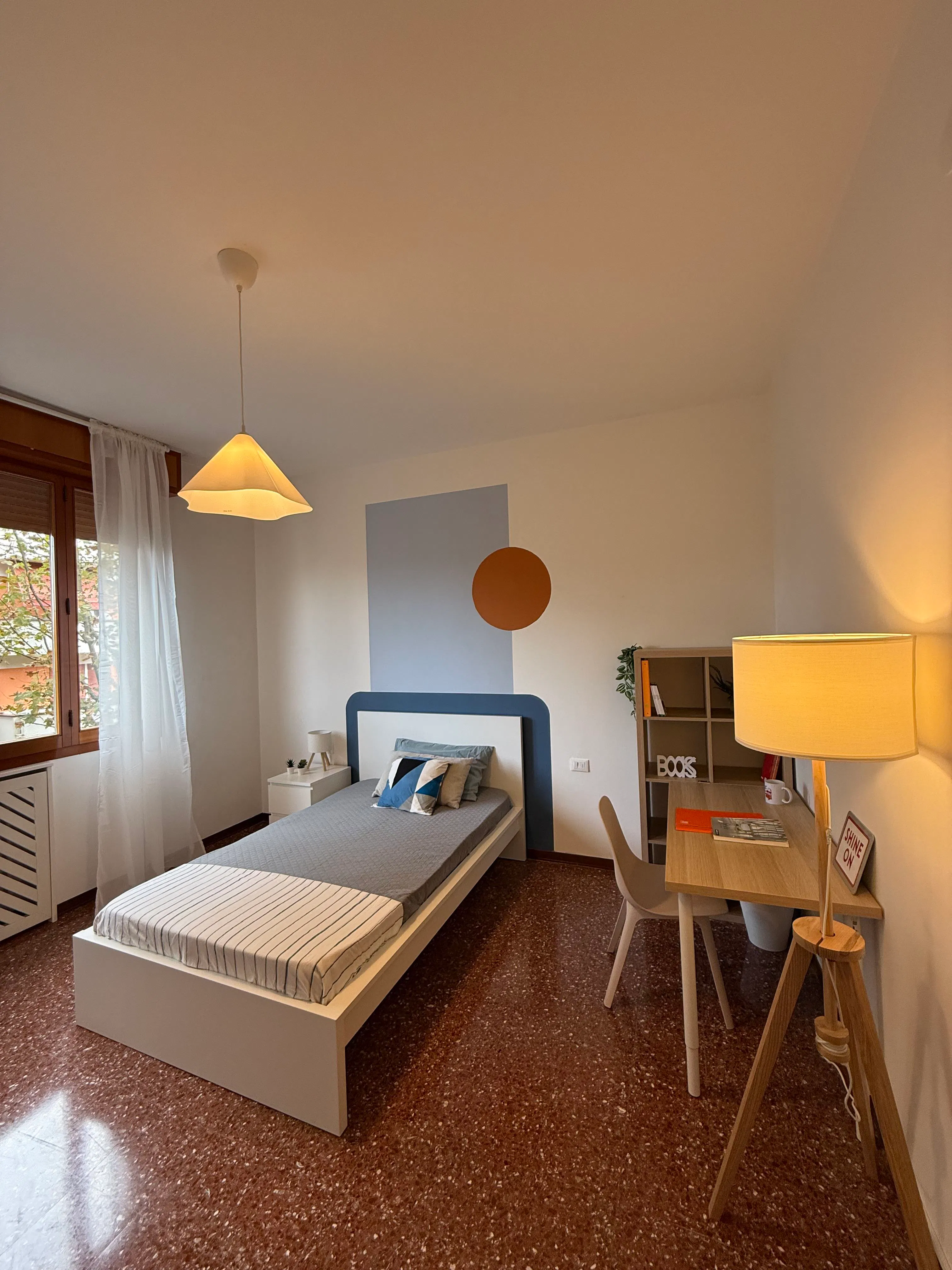 Large Single room available for rent in a beautiful, bright, very spacious, and newly renovated apartment. The apartment consists of three very large double bedrooms for single use, an entrance area, a fully equipped eat-in kitchen, a large bathroom with washing machine, and a spacious storage room. Located on the second floor with elevator, in a well-served area and excellently connected to the historic city center by public transport. Bicycle parking and green areas are available nearby. The room is furnished with a one-and-a-half size bed, bedside table, full-height two-door wardrobe, shoe rack, chest of drawers, desk, bookshelf, lamps, and a floor lamp. OUR CONDITIONS: 1. We offer all-inclusive rooms. The rent includes: condominium expenses, electricity, gas, heating, water, WIFI, waste tax. In the house it is forbidden to smoke. There is a one-off fee of 450€ including: registration of the contract, cleaning of the room when you leave and basic maintnance during your stay. 2. Regular maintenance and periodic checks that guarantee the house will always be in excellent condition for the entire duration of your contract. BOOKING THE ROOM Please be aware that HousingAnywhere is an online booking platform. Therefore exchanging contact details and offering viewings is not possible. If you would like to reserve this accommodation, send me a booking request or a message and please mention your age and occupation. For any doubts do not hesitate to ask...