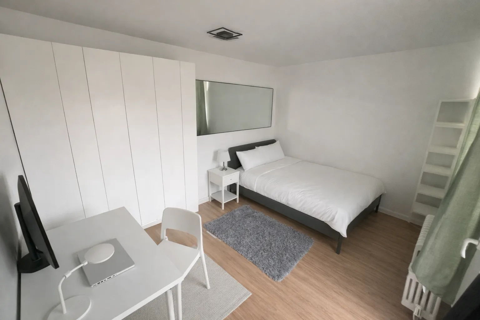 Room Description This bright and fully furnished private room (approx. 12 m2) is located in a well-maintained shared apartment on Römerhofweg in Garching near Munich. The room is equipped with a comfortable bed, a spacious wardrobe, and a dedicated workspace, making it ideal for both studying and working from home. High-speed WiFi and central heating ensure a comfortable stay throughout the year. The apartment (approx. 100 m2) is shared with up to 3 other residents, typically young professionals or students (mixed gender, 20–35), creating a structured and respectful co-living environment. ⸻ Apartment & Common Areas Residents have access to: • Fully equipped kitchen with all essential appliances • Bathroom + separate toilet • Washing machine • Clean and well-maintained shared areas The apartment is professionally managed and designed for practical, long-term living. ⸻ Location The property is located in Garching (Römerhofweg), a quiet and well-connected area north of Munich. • Excellent U-Bahn connection to Munich city center, U6 in 10 min • Close to TUM Munich (Garching Campus) 15 min away • Supermarkets, restaurants, and daily amenities nearby • Green surroundings with a calm residential atmosphere Perfect for students, interns, and professionals working in Munich or Garching. ⸻ Additional Information • Shared apartment (co-living concept) • Mixed-gender household • Quiet and respectful environment expected • Suitable for long-term stays ⸻ About Us With us, you book more than just a room: • Professional provider based in Munich • Reliable communication and support • Local service team • Standardized and transparent processes • Personal or digital move-in support ⸻ If you are interested, feel free to send us a message — we usually respond quickly...