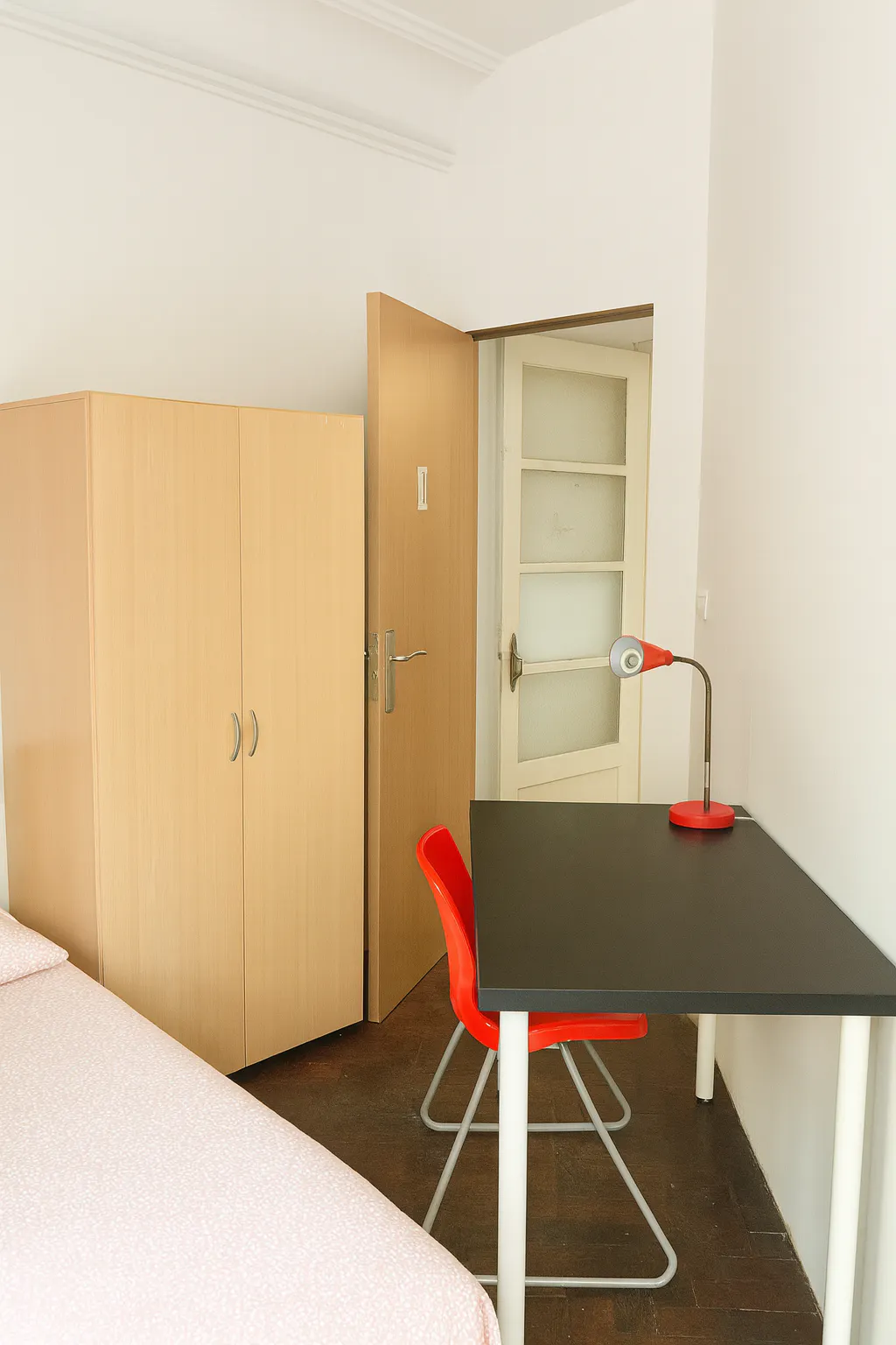 Furnished apartment with 7 bedrooms and 3 shared bathroom. It also has a large balcony, an equipped kitchen, and a pleasant living room. There are 7 bedrooms that were designed with students' needs in mind, so each one has a desk. You will find this very convenient when you want to study in peace. The kitchen is equipped with a dishwasher, portable stove, microwave, and refrigerator and freezer. Single room in flat in Rua Passos Manuel lisbon. Cleaning service included once per week in common areas. *Bills are included up to €20,00 per person per month...