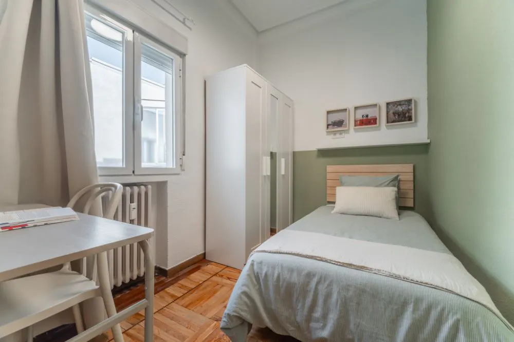 Cozy apartment in Atocha This apartment has been recently renovated with modern finishes. It has 5 bedrooms, two bathrooms, and a terrace connected to the kitchen. The kitchen is fully equipped with a ceramic cooktop, a refrigerator, an oven, a microwave, and the basic necessary utensils. At the end of the hallway, there is a dining area with a television. The building has a concierge service and elevators, and it is located just a few meters from the Estación del Arte, Atocha, and Embajadores metro stations. It is perfect for international students and young professionals looking for a central location with excellent connections to the rest of the city. A unique opportunity to enjoy life in Madrid! The Atocha area is one of Madrid’s most iconic and vibrant neighborhoods, where history, culture, and modernity come together in perfect harmony. Located right in the heart of the city, this area blends urban energy with the comfort of a well-connected and lively environment. Living near Atocha means being just steps away from some of Madrid’s main attractions, such as the Prado Museum, Retiro Park, and the Reina Sofía Museum. Its proximity to universities like the Complutense University, the Polytechnic University, and several art and design schools makes it an excellent choice for students and young professionals. Atocha Station is one of the capital’s main transportation hubs, offering metro, commuter train, and high-speed AVE connections that make it easy to reach any part of Madrid — or even other cities across Spain. Day to day, the neighborhood provides every convenience: supermarkets, charming cafés, cultural spaces, green areas, and a rich gastronomic scene that combines tradition with innovation. It’s an ideal area for those looking to experience the best of Madrid life with everything within easy reach. * *Atocha Metro (L1)* and *Embajadores Metro (L3, L5)* are just a few minutes’ walk away, providing direct connections to the entire city. * *Atocha Renfe Station* is nearby, offering commuter, regional, and long-distance trains, as well as *AVE high-speed services*. * Several *bus lines* in the area ensure excellent mobility throughout the city. * An additional advantage is the *Bicimad bike-sharing system* , which offers a sustainable and convenient way to get around Madrid by bicycle. The closest station is *No. 45 – Ronda de Atocha* , just *2 minutes on foot* from the apartment. With an affordable monthly subscription of around *€10* , you can access over *600 bike stations* across Madrid — perfect for exploring the city or getting around quickly and easily. * *Prado Museum* – One of the world’s most important art museums, featuring masterpieces by Velázquez, Goya, and Bosch. * *Retiro Park* – Large urban park with gardens, ponds, monuments, and the Crystal Palace. * *Reina Sofía Museum* – Modern and contemporary art museum, home to Picasso’s famous Guernica. * *Royal Botanical Garden* – Historic garden with an extensive collection of plants and peaceful walks near the Prado. * *CaixaForum Madrid* – Cultural center with art exhibitions, architecture, and innovative cultural activities. * *El Rastro* (Sundays) – Open-air market nearby, ideal for antiques, clothing, and curiosities. - Don't smoke - Pets are not allowed - Parties are forbidden - Take out the trash daily - Short-term visits are allowed - (hidden) informs that in this flat a device has been installed in order to allow the monitoring of the noise level (decibels) 24 hours a day. The system emits an alert whenever the sound level exceeds the maximum allowed by the Community of Madrid, mainly between 11pm and 6am. Cozy room in Atocha Cozy room in Atocha, in a shared apartment, ideal for international students and young professionals. The room is equipped with everything needed to enjoy your stay; it has a single bed ( *90* *cm* ), a three-door wardrobe with an integrated mirror, a desk with a chair and lamp. Additionally, it comes with a ceiling fan. The room has an area of *6.10 m2* , a window, central heating, and its own lock on the door for more privacy. This room is located on the seventh floor of the building. The kitchen and dining room are shared with the other tenants of the apartment. For more details, we invite you to view the floor plan and location of the room. **Bedding is not included, only the mattress cover is provided.* Please keep in mind that the amount requested in the "other additional costs" field refers to tenant assistance coverage....