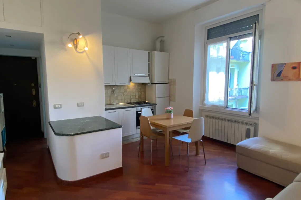 This spacious and bright one-bedroom apartment is located on the second floor of a building without elevator. Thanks to its high ceilings and large windows, the apartment feels very airy and filled with natural light, while the internal courtyard exposure ensures a quiet and peaceful living environment. Upon entering, you are welcomed by a practical entrance hall with a storage unit, perfect for organizing your personal belongings. On the left, you will find the bathroom, which includes a shower, toilet, bidet, and a window that provides natural ventilation. At the entrance of the bathroom, there is also a dedicated laundry area equipped with a washing machine. The living area features a comfortable and modern open-plan layout, with a fully equipped kitchen and a cozy lounge space. The kitchen includes both gas and electric hobs, an electric oven, and a dishwasher, offering everything you need for everyday living. The living room is furnished with a large L-shaped sofa, a big TV, and a spacious bookcase. All furniture is new and carefully selected to create a comfortable and functional environment. The bedroom is also very spacious and includes a large wardrobe. It is furnished with two single beds that can be easily joined to form a double bed, making it ideal for both individual tenants and couples. All rooms overlook the internal courtyard, ensuring maximum silence and privacy. Security deposit of € 1300. Electricity and gas bills included in the price up to € 250/month. Area description The apartment is located about a 20-minute walk, or 15 minutes by tram, from Bocconi University, making it ideal for students. The area is safe, residential, and well served by public transport, with easy access to the city center. The nearest metro stop is the Green Line (M2) at Piazza Abbiategrasso–Chiesa Rossa, a 10-minute walk away, with direct connections to IULM (Romolo) and Politecnico di Milano (Piola), also convenient for NABA students. Tram number 15 takes you directly to Piazza del Duomo in about 20 minutes, making it a great option for Istituto Marangoni students as well. All essential services, including supermarkets, shops, and restaurants, are within walking distance. IMPORTANT – ALL-INCLUSIVE PRICE The price includes rent, utilities (electricity, gas, water, Internet), building fees, taxes, 22% VAT, agency fee, monthly cleaning, contract, check-in/out and maintenance management. Electricity and gas may be subject to a usage cap, as specified in the listing. Final cleaning is NOT included and will be deducted from the security deposit (estimated amount assumes the apartment is left in good condition). HousingAnywhere’s service fee is added by the platform and shown before payment. The total price does not change, but payments are split between agency and landlord. You will receive a booking confirmation and a rental contract....