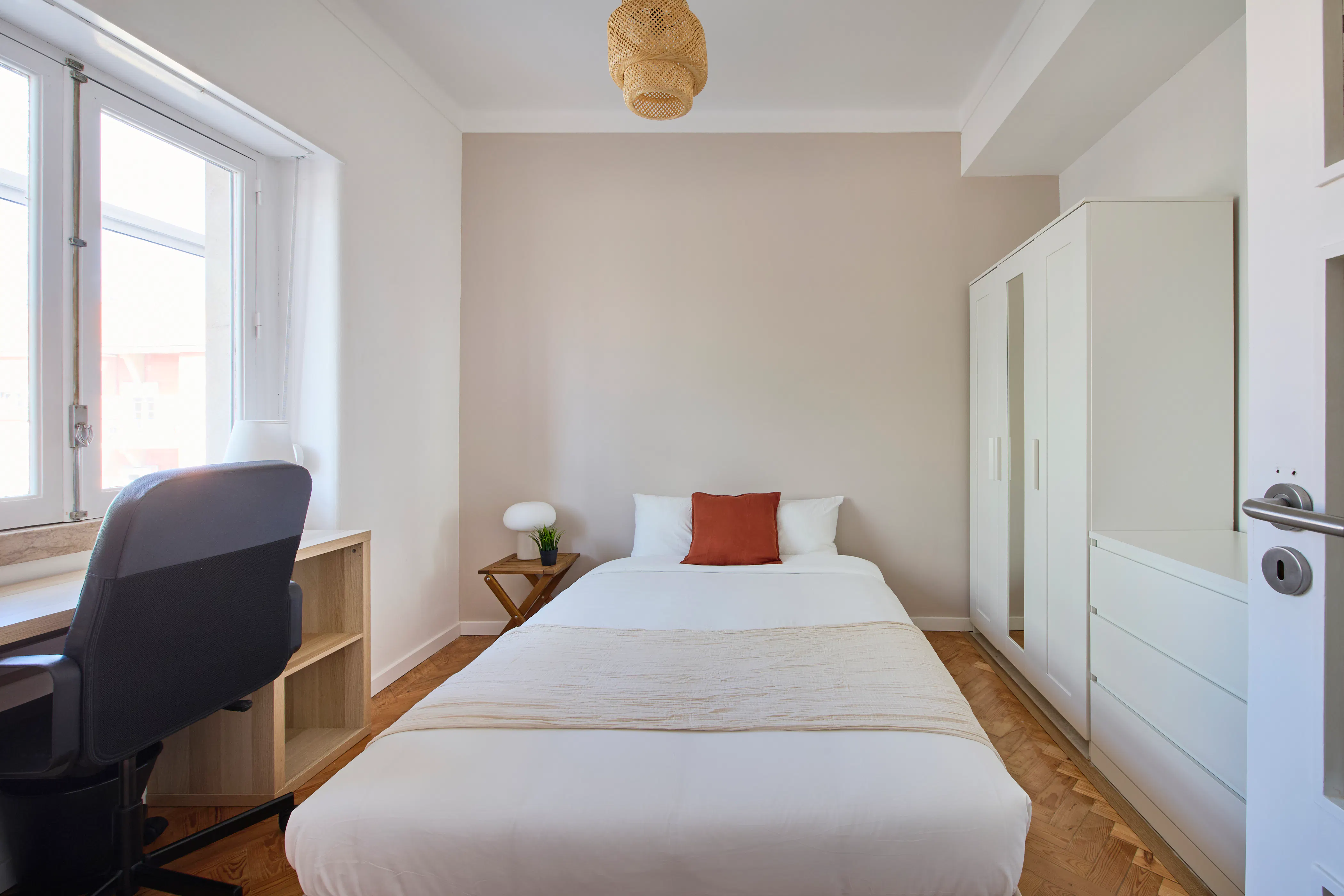 🌟 Bright and Professional Room in the Heart of Alvalade! 🏠 Apartment This expansive 10-bedroom apartment is perfectly equipped for a communal yet organized lifestyle in Lisbon. The shared kitchen is fully functional with an oven, microwave, and washing machine, making daily chores effortless. With two modern bathrooms featuring walk-in showers, the flat ensures a smooth routine for all residents. High-speed internet and a welcoming atmosphere make this an ideal base for your Lisbon adventure. 🛏️ Room The bedroom is a cozy and private retreat designed for both rest and productivity. It features a comfortable double bed, a spacious closet for your wardrobe, and a dedicated workspace with a desk and an ergonomic office chair. Large windows allow for plenty of natural light, creating a bright and inspiring environment for studying or working from home. 📍 Neighborhood Located on the prestigious Av. EUA, you are situated in one of Lisbon’s most sought-after residential districts. You are a 12-minute walk from the Roma-Areeiro train station and a short stroll to the Alvalade Metro station, providing easy access to the entire city. The area is famous for its traditional bakeries, local markets, and proximity to University City, offering a perfect balance of local charm and urban convenience. ✨ Extra information To ensure a smooth and transparent stay, please keep the following residency conditions in mind: - Utility Cap: Monthly bills are included in your rent up to a limit of 35€ per tenant. - Cleaning Services: Professional cleaning is included in the rent price to maintain the common areas. -Security Deposit: The deposit is handled directly with the advertiser and can be settled via bank transfer or cash during your check-in. - Termination Policy: To be eligible for a deposit refund upon early departure, a minimum of one-third of the total contract stay must be completed. - Room Dimensions: Please note that all provided room sizes are indicative and intended for guidance purposes...