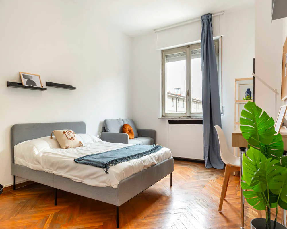 Single room in a shared apartment, composed by 6 bedrooms and 2 bathrooms. Of about 18 sqm with a one and a half bed and a work station. With wifi, concierge services, dishwasher, washing machine. Energy class: G, IPE 225.30 Kwh/Sqm year. Current tenants: 1: 24, Female, Worker 2: 22, Female, Student 3: 22, Female, Student 5: 23, Male, Student 6: 22, Female, Student Please be aware that HousingAnywhere is an online booking platform. Therefore exchanging contact details and offering viewings is not possible. If you would like to reserve this accommodation, send me a booking request or a message and please mention your age and occupation. I look forward to talking to you! CONTRACT Please, note that to all our listings we apply fortnightly contracts. This means that If you check-in during the first half of the month, you will be charged for the full month. If you check-in during the second half of the month, you will only be charged for the second half. The second half of the month starts on the 16th. If you check-out during the first half of the month, you will only pay until the 15th of that month. If you check-out during the second half of the month, you will be charged the full month....