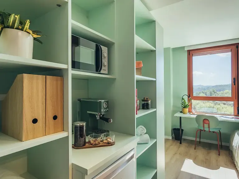 Study, work, connect, and feel at home.Explore more student residences in Barcelona🌟Half board included in the price🌟 (July and August restaurant is close) 🔸Cleaning room, change of sheets and towel included in the price. 🔸Deposit: Semester is 400€ and Academic is 700€ 🔸 All-inclusive living means you’ll enjoy high-speed internet, water, heating, air conditioning, 24h security, and unlimited access to all common areas such as the gym, study rooms, games lounge, and more — all covered in your rent! 🌐💡🏋️♂️📚 🛏️ Your Room Enjoy up to 15.13 m2 of fully furnished space, including a 105x200 cm single bed, a study area with desk, chair, and lamp 💡, and a private kitchenette with a microwave and fridge. The ensuite bathroom 🚿 features a shower and extra storage, along with a wardrobe and shelves to keep your belongings organized. 🏡 Residence & Living Experience This residence offers modern, fully furnished rooms and studios with private kitchen. Our categories are designed to provide students with a comfortable and independent living experience. Designed for ultimate comfort and ease, the building features outstanding amenities including a pool, fully equipped gym, study zones, coworking spaces, a dining room, laundry or terrace 📍 Location & Neighborhood Just a short walk from the Autonomous University of Barcelona (UAB) – Campus Bellaterra and a 29-minute bus ride to ESADE – Sant Cugat, Alba Viu offers the perfect mix of comfort, community, and convenience. With a bus stop right in front and easy train access to Barcelona 🚍🚆, getting around is simple. We're also near the ALBA Synchrotron — ideal for students and researchers. ❗ After the reservation is completed, you will be required to pay the deposit and other fees through our secure payment system....
