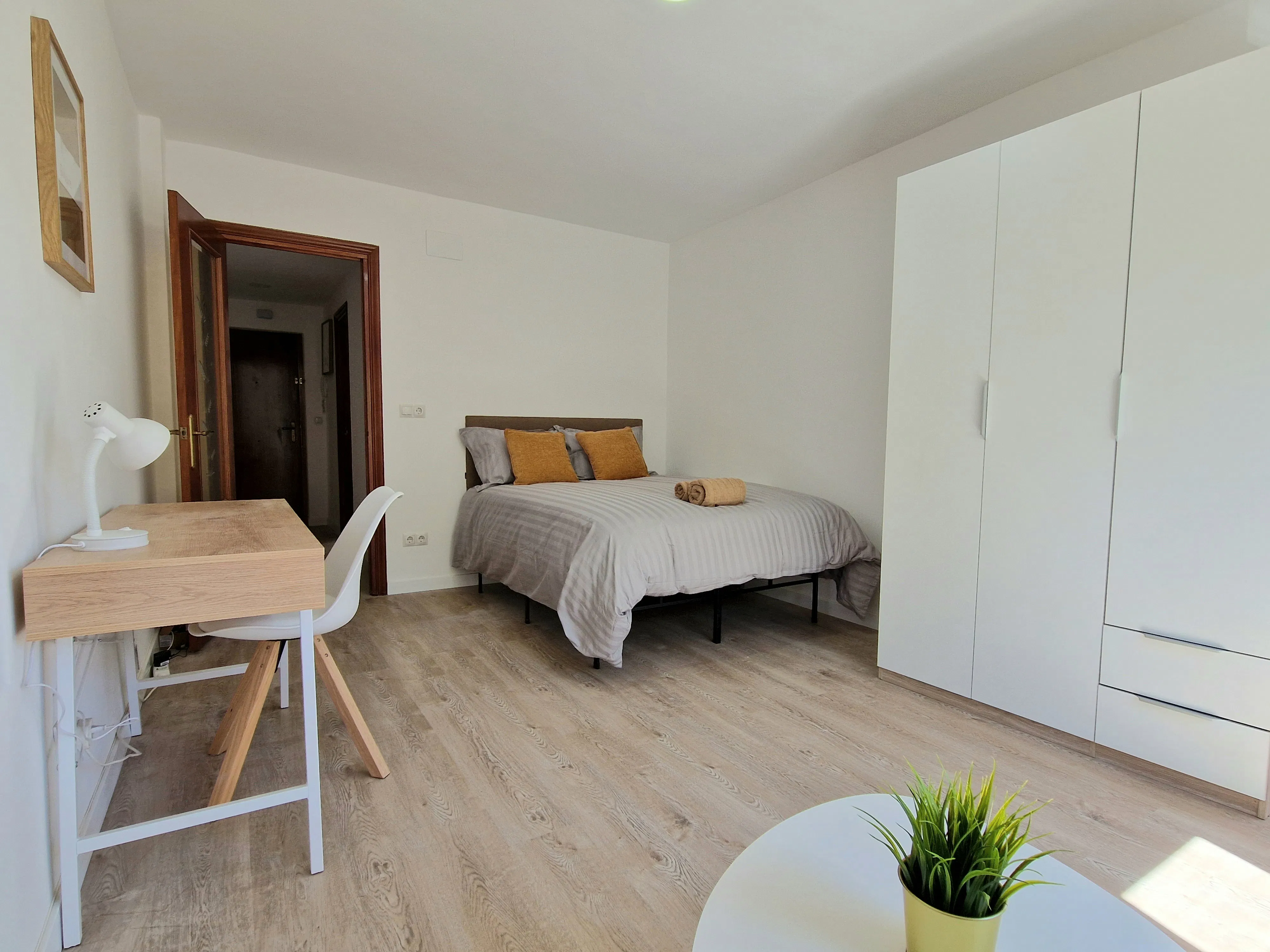 Come and move into a COMPLETELY RENOVATED flat, FULLY FURNISHED AND WITH A LIFT. We offer you an idyllic experience focused on comfort and peace of mind. Everything has been designed to make you feel right at home whilst you study or work. The final touches are currently being added to the flat (photos will be updated with the latest details) and you’ll be one of the first people to move in and enjoy the flat. Your shared flat is in the best part of Parla, in the REYES area, known for its residential character and the amenities it offers. Close to public transport, a library, a health centre, a police station, parks, supermarkets, etc... In addition to all this, you can reach the center of Madrid in less than 30 minutes thanks to the Renfe train service, and we are only 2 stops from the Carlos III University campus. The room price does NOT include utility bills, which amount to €50 per month. The following services are included in the bills: Electricity and heating Cold and hot water High-speed internet Cleaning of communal areas THERE IS NO AGENCY FEE, as the rental is arranged directly with the owner. ** YOUR ROOM Four bright rooms, all with BRAND NEW furniture and tastefully decorated. The rooms feature a double bed measuring 135 cm, mattresses, spacious wardrobes, a desk with a chair and an LED lamp, bedding including a duvet, duvet cover, pillows and a lock with a key to ensure your privacy. Room 1: A very spacious, exterior-facing room with a private terrace for your exclusive use, so you can enjoy the fresh air. It includes a reading/tea corner to provide that cosy touch you need during the day. ** KITCHEN A BRAND NEW, modern and fully equipped kitchen: Appliances: induction hob, oven, microwave, fridge, dishwasher, washing machine, etc. Kitchenware: plates, glasses, cutlery, saucepans, frying pans, etc. Table and chairs Plenty of storage furniture available. ** BATHROOM Spacious 70x120 cm shower with a NEW shower screen and shower rail. NEW washbasin and vanity unit with storage space available. If you’re interested in living in a high-quality flat with other respectful and friendly people, please don’t hesitate to get in touch with me, letting me know why you’re looking for a room in Parla and when you’d like to move in. I look forward to welcoming you home 😊 See you soon! P.S. Out of respect for the other tenants, and those who will come after you, SMOKING IS NOT PERMITTED anywhere in the property. Similarly, pets are NOT allowed. To reserve the room, you must pay a one-month deposit and provide a guarantor and/or employment contract and your last three payslips....