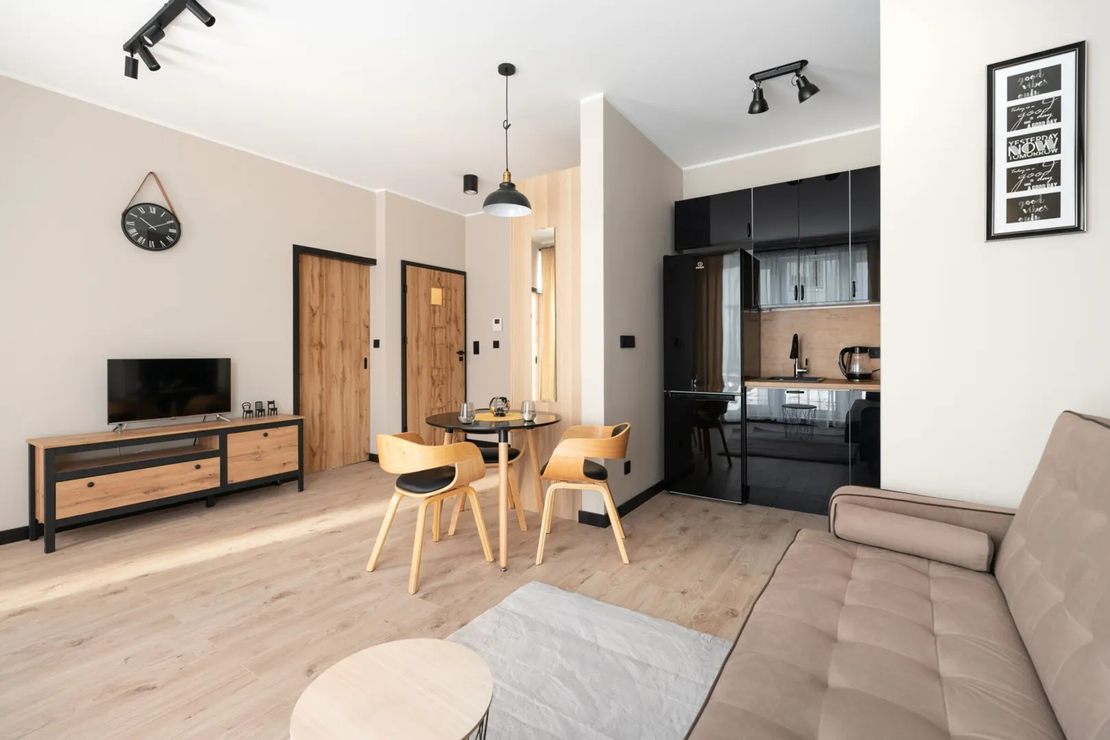 One bedroom apartment with a large balcony near the Intensive Care Center Olinek A spacious one-bedroom apartment in Warsaw's Mokotów district is an excellent choice for four people. Fully equipped, it ensures comfort, relaxation, and enjoyment throughout your stay. The apartment is located on the 1st floor of a building with an elevator, ensuring convenient access. Space — LIVING ROOM Fold-out sofa, coffee table, TV stand, television, dining table with 4 chairs. — BEDROOM Large double bed, nightstands, wardrobe. — KITCHENETTE Induction hob, oven, dishwasher, microwave, kettle, fridge with freezer, glasses, set of pots, cutlery, frying pan. — BATHROOM Shower and bathtub, toilet, washbasin, mirror, washing machine, hairdryer, towels. Additional amenities: iron with ironing board. Available multimedia: TV and Wi-Fi internet. By booking our apartment, you accept our terms and conditions. Guest access The apartment is located in the vibrant Praga-Północ district, known for its artistic atmosphere and historic character. Nearby you will find the famous Ząbkowska Street with numerous cafés, restaurants, and cultural venues. The Neon Museum and the Soho Factory area are also within easy reach, offering unique exhibitions and creative spaces. The Vistula Boulevards and the Old Town are easily accessible thanks to excellent public transport, including Metro Line 2...