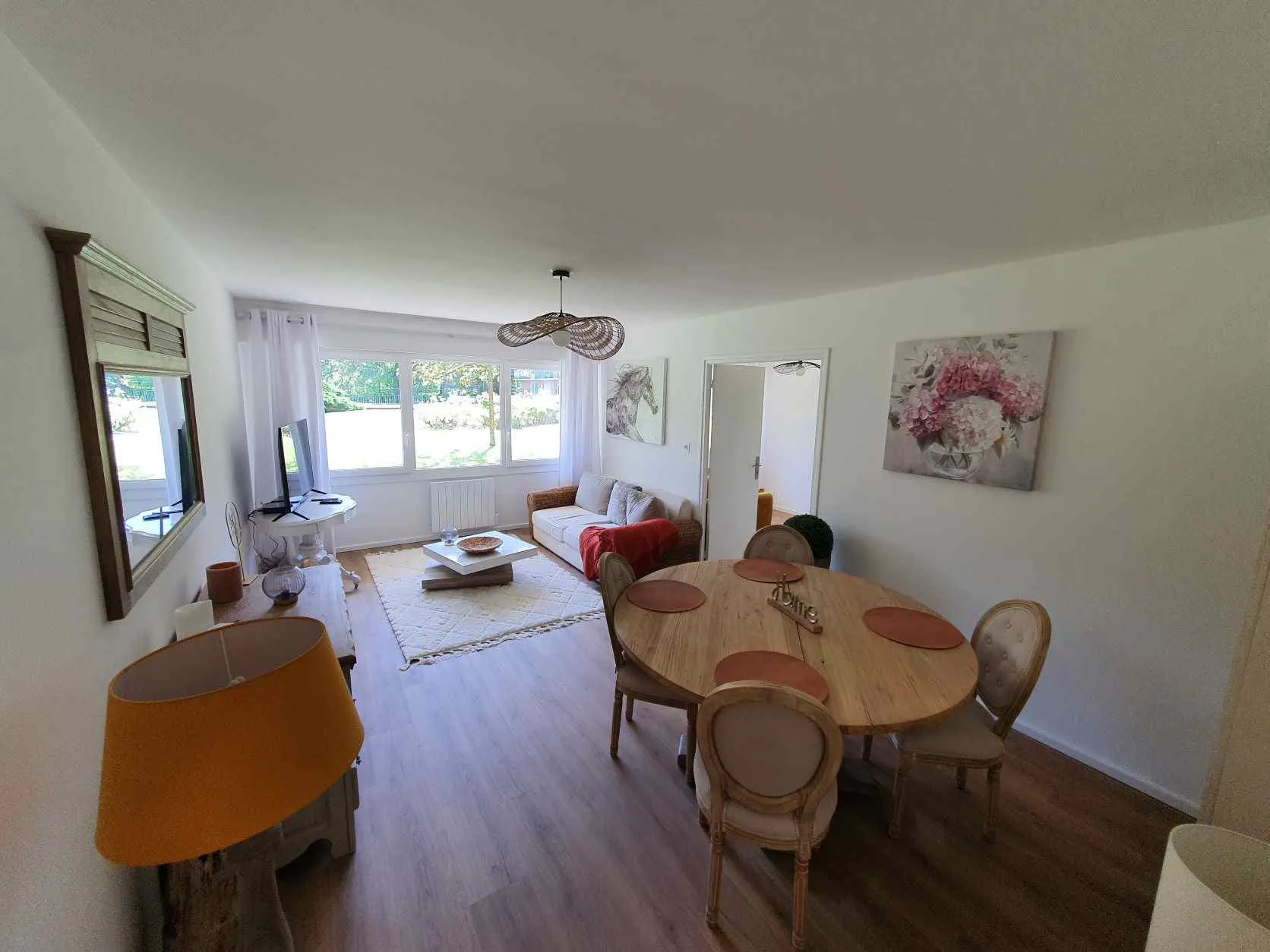 loue superbe T3, 75m2 meublé dans résidence calme, arborée et sécurisée. Vue magnifique sur le parc. Aucun vis-à-vis. Se situe à 5 minutes à pied du tramway Croisé Laroche, à proximité des commerces et des écoles. 5 minutes à pied de l’hippodrome. RDC. Gardien sur place. L’appartement à été refait à neuf avec des matériaux de qualité. Cet appartement comprend : -Une entrée -Un salon/séjour avec une table à manger, chaises, une vitrine, une commode, un grand canapé, une table basse et une TV avec la fibre. -Deux chambres, 14 m2 et 13m2 avec parquet. Dans la première chambre, un lit double de 160cm, un dressing et un bureau. -Salle de bain avec douche, miroir, un meuble double vasque et un sèche serviette. -WC séparé. -La cuisine de 14 m2 est entièrement équipée, avec réfrigérateur/congélateur, lave vaisselle, lave-linge, sèche-linge, four, plaque induction, micro-onde, machine à café, bouilloire, vaisselle, aspirateur, etc... -Ilot central avec chaises de bar. -Placard aménagé dans le couloir. -Fenêtres neuves, double vitrage et équipées de volets roulants motorisés dans toutes les pièces de l’appartement. -Porte blindée -Deux places de parking, une aérienne et une souterraine. -Terrain de tennis pour les résidents. -Local à vélos. -Une cave. Disponibilité...