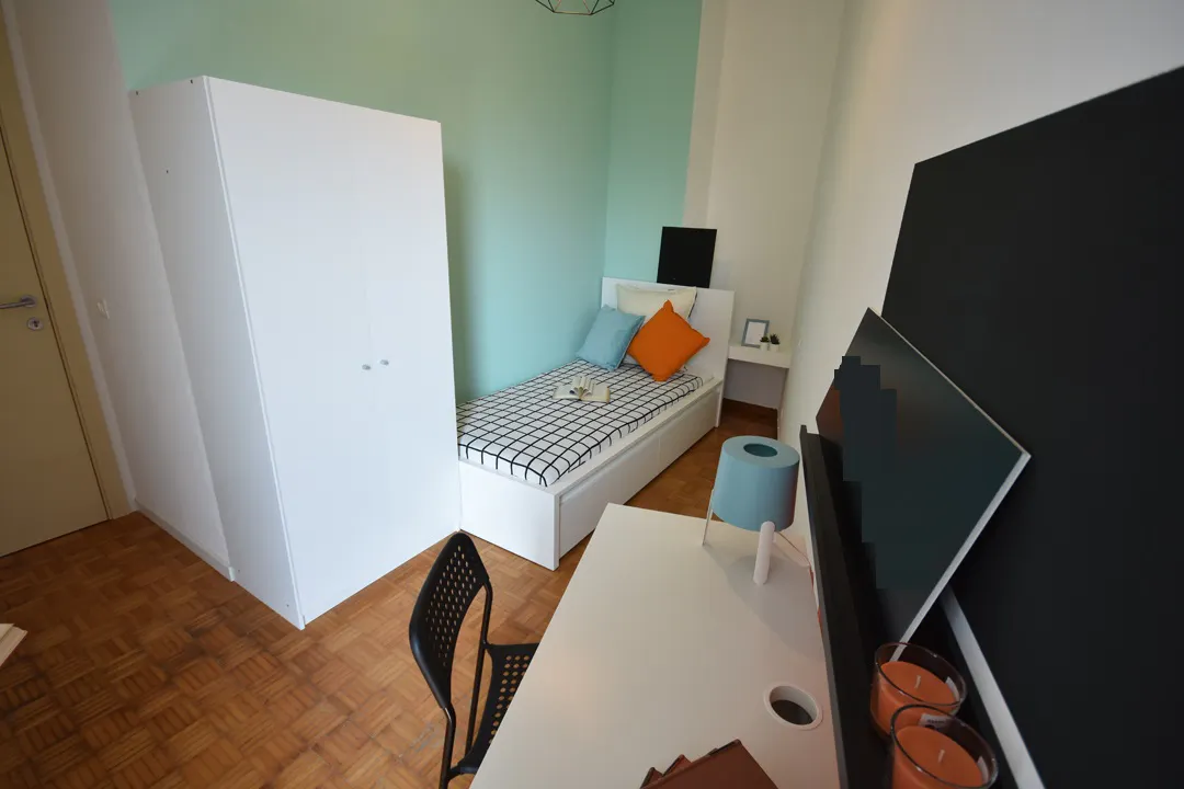 Zona Centro, posizione strategica e ambita, si affitta una bellissima singola ristrutturata appositamente per offrire comfort e comodità ai nostri studenti. La è dotata di presa tv, letto singolo, armadio 3 ante, scrivania con portaoggetti, comodino, tendaggi, specchio e libreria. Piccolo balcone condiviso con la 17. I colori delle pareti favoriscono il buon umore e aiutano nello studio...
