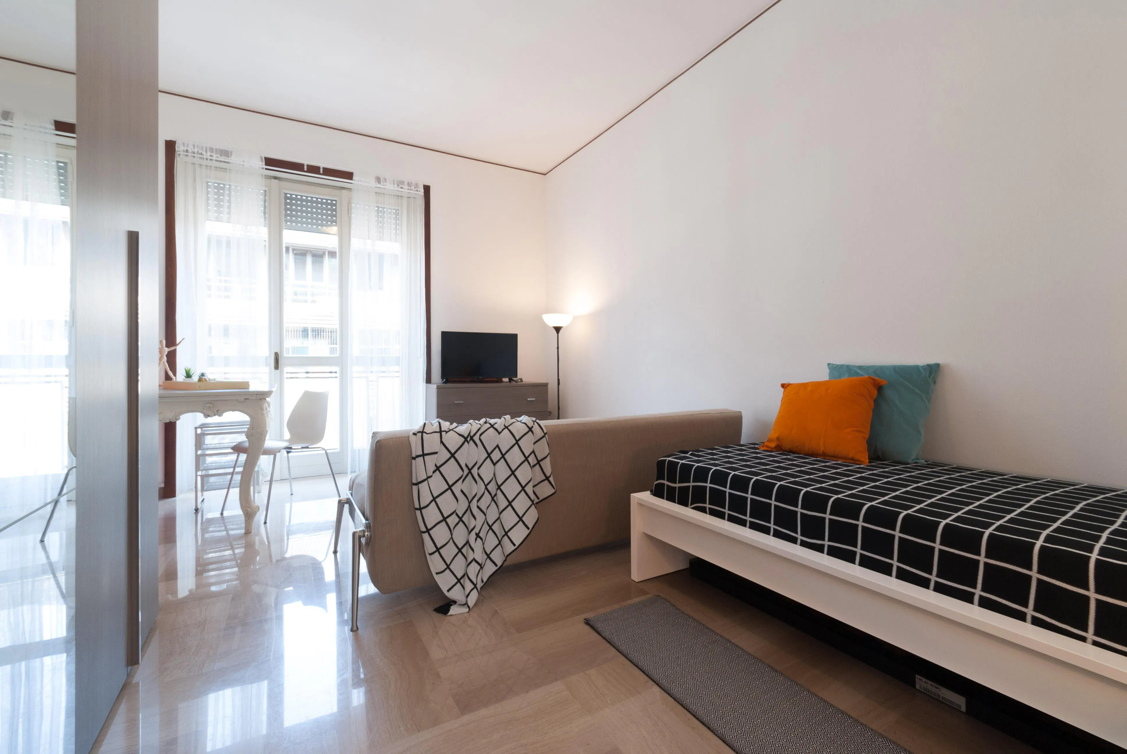 Zona Santa Lucia, posizione strategica e ambita, si affitta una bellissima suite ristrutturata appositamente per offrire comfort e comodità ai nostri studenti. La è dotata di TV Led, letto singolo, armadio 3 ante, scrivania con portaoggetti, comodino, tendaggi, specchio, libreria. I colori delle pareti favoriscono il buon umore e aiutano nello studio...