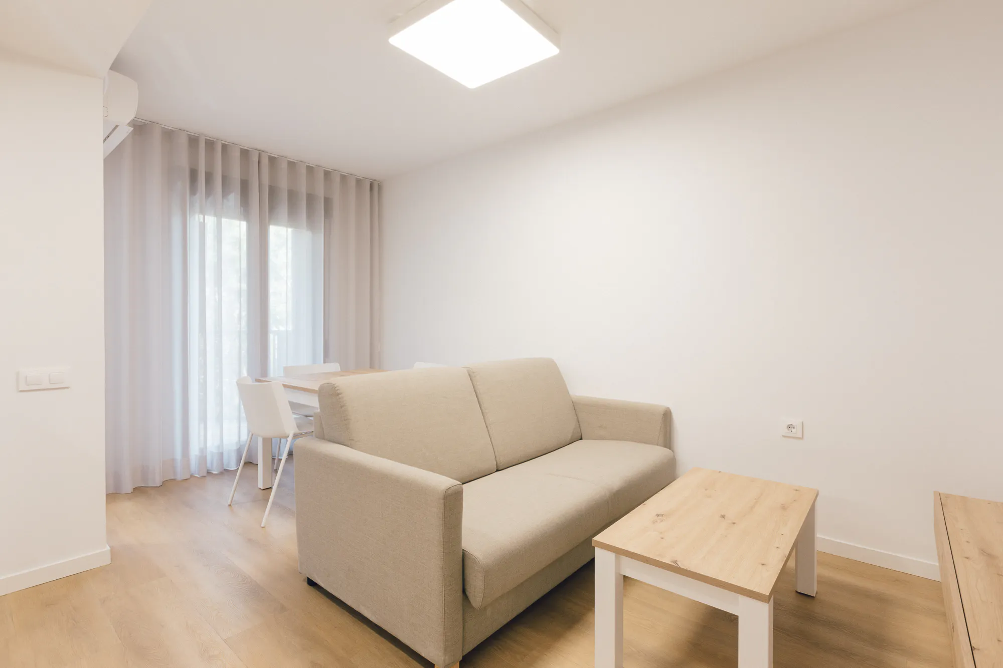 Luminoso y bonito apartamento totalmente amueblado de 34m2 en Barrio Campanar. Dispone de un pequeño salón con sofá, smart tv, aire acondicionado, cocina americana totalmente equipada y un pequeño balcón exterior. El apartamento dispone de una habitación con cama matrimonial y un baño completo junto al dormitorio. Excelente conexión con cualquier punto de la ciudad , frente a un centro comercial....