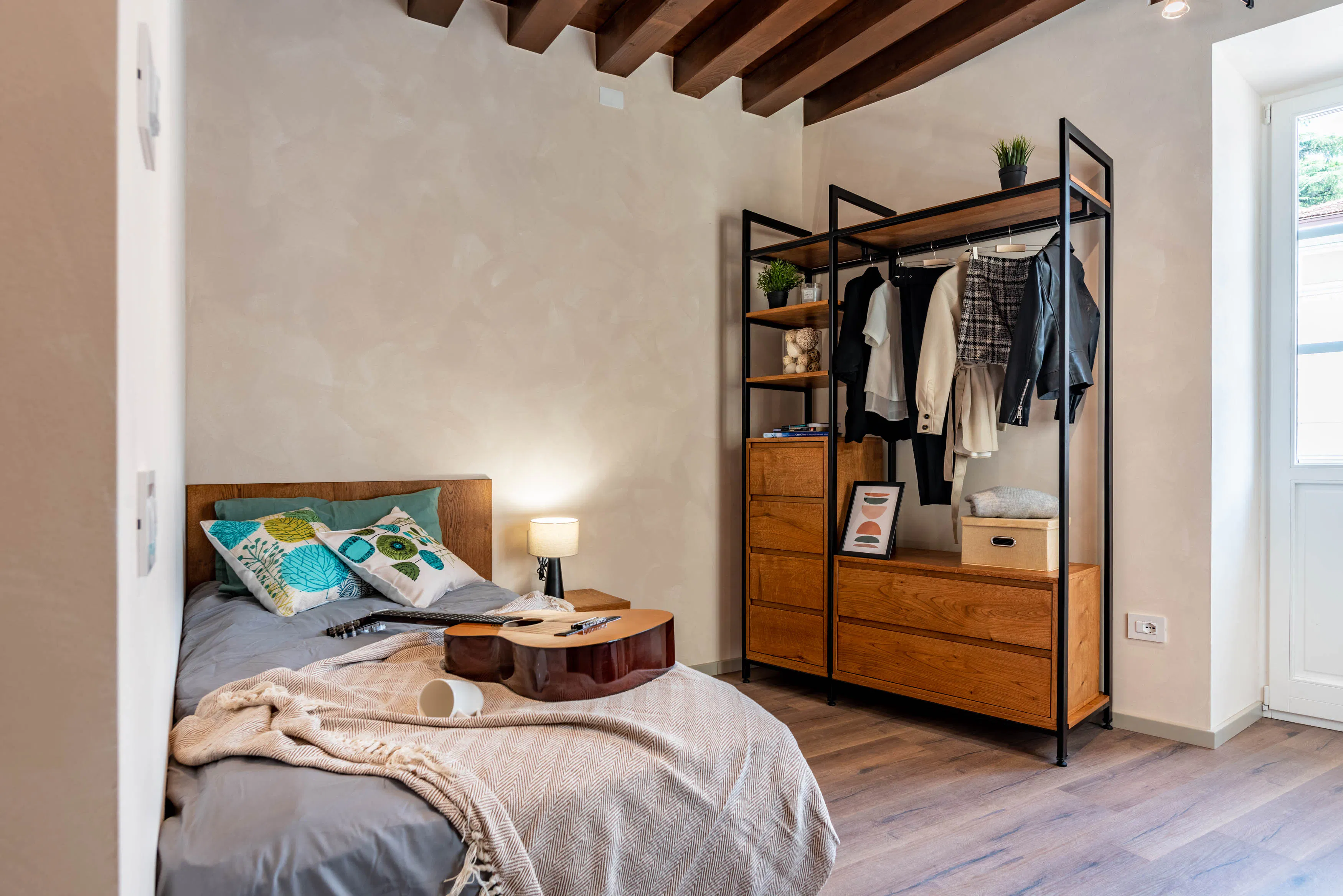 💢💢💢 The apartment is located in a strategic area of Rovereto at the beginning of Corso Bettini, which is the main street of the town, but above all it is located a few meters from the town's university faculties and from Mart, the famous Contemporary and Modern Art Museum of Trento and Rovereto. It is an historic building completely renovated between 2020 and 2021, with a lift and a common area to park bicycles. The first-floor apartment offers a wonderful view of Corso Bettini and the rooms have been specifically designed to create a bright environment and renovated to optimise the spaces. The total area of the apartment is 115 square meters: divided into 4 very spacious bedrooms and a common area with a fully equipped kitchen, including a 50-inch TV and a modern King Size fridge. Each room has exclusive access to a private bathroom. The apartment is also provided with ultra-fast fiber WI-FI and a dedicated area for laundry use with a washing machine and a dryer. The room is very bright, thanks to the two big windows that let natural light in. The room is also completely furnished with: a single bed, large wardrobe, desk, ergonomic armchair, bedside table, curtains, mirror, shoe cabinet and bookcase. EXPLANATORY NOTE: The present offers refers to a single bed in a double room with exclusive access to a private bathroom. Nearby The following services are available within a 300m radius of the house: ✅ Supermarket ✅ Pharmacy ✅ Bus stop ✅ Newsstand ✅ University library ✅ ATM Your accommodation is sustainable Reducing the environmental impact of each home is at the heart of our work: we seek and find solutions that are environmentally friendly. 📌 Apartment Soundproofing. 💳 The following discount applies to current availability where shorter rental periods are available until August 31 : ♦️ Administrative fee - €269.00 ♦️ Security deposit - €700.00 The one-off payment. A single fee for the entire duration of the contract, which will allow you to be worry-free. Here's what it includes: 📍 E-drafting of the contract 📍 Taxes and stamps for contract registration 📍 Help Desk for maintenance assistance 📍 Full-coverage insurance 📍 Cleaning at the start of the contract 📍 Sanitation of the apartment 💢💢�...