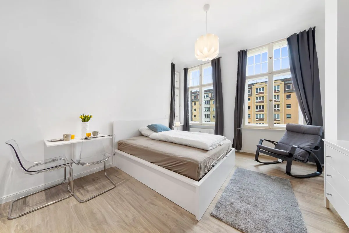 For accurate information, please refer to the video included in the listing. Some furniture items may differ from the photos. The apartment is located in the heart of Friedrichshain, one of Berlin’s most vibrant neighborhoods, offering excellent public transport connections as well as a wide range of shops, cafés, and restaurants within walking distance. The kitchen is fully equipped with all essential utensils, including a microwave and refrigerator. A TV is also provided, ensuring a comfortable living experience from day one. The building features a shared laundry room with a washing machine and dryer available for residents. The cost per wash cycle is approximately €4.50. A basement storage unit can be booked through the property management, subject to availability. This apartment is ideal for students, professionals, or commuters looking for a well-located and conveniently equipped home in Berlin...