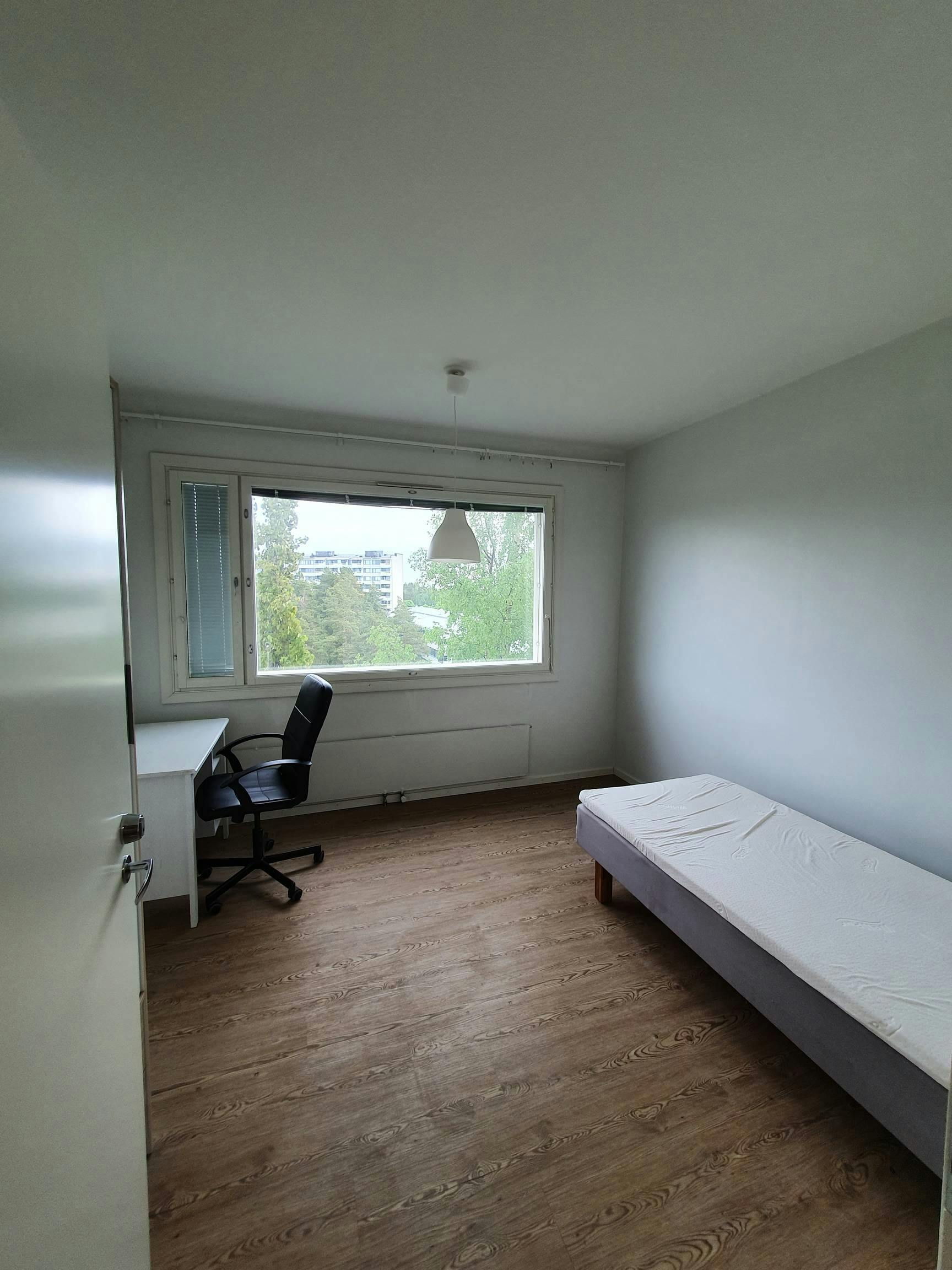 Excellent connections to Helsinki city center. 200 m to Metro and shopping center. 6th floor with large windows in all rooms. Deposit: 600 € Furniture including bed, desk, chair, pillow, blanket, bed Shared facilities New modern kitchen, bathroom, toilet, hall, attic storage, free parking, elevator, saun...