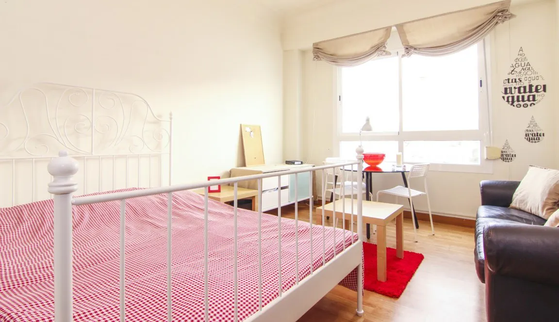 Room 5 Room description: This interior bedroom is furnished with a double bed, desk, chest of drawers, and a standalone wardrobe. Apartment description: Special Landlord Policies. A renovated 5 bedroom apartment with 1 bathroom is available for rent on Calle Denia in the L'Eixample district of Valencia. This area is known for its cultural offers, rooted in its Moorish past, and now serves as a hub for locals who prefer to dine and shop away from the tourist-saturated city center. This 5 bedroom apartment is truly representative of the neighborhood in which it nestles: beautifully designed with culture and functionality, tenants will love coming home to this gorgeous flat. All of the rooms in this spacious 110 m2 flat are luminous, extremely well distributed, and furnished for comfort! Details: - Property type: apartment - Floor: 5th - Elevator: yes - Wi-Fi installed: yes - Wi-Fi activated: yes Landlord policies: - Speaks English: yes - Lives on property: no - Contract type: monthly - Deposit: 1 month's rent - Utilities: €40 per person, per month - Payment method: cash - Smoking permitted: no (only on balconies) - Accepted ages for tenants: 18-30 years old only Neighborhood information: The district of L’Eixample is comprised of 3 neighborhoods: Ruzafa, El Pla del Remei, and Gran Vía. The most famous and popular is Ruzafa (also spelled Russafa), characterized by its ethnically diverse and cultured atmosphere; it is a place to go for authentic international cuisine (including a location of the Taste of America chain of American food stores). Russafa is a great neighborhood for students as well and due to its vibrant flavor and proximity to the center of the city, it is becoming a target area for cool local small businesses. While L’Eixample lacks the genius of Antoni Gaudí, there are still plenty of elegant Modernist-style buildings throughout the neighborhood. You’ll often find groups of friends meeting on the Plaça de Canovas, which is right next to the famous Edificio Chapo, to go out for the night. This is also the epicenter for Les Falles festival at the end of March, when the city turns into a hotbed destination for travelers worldwide. Transportation: The Bailen metro station (line 5) is a 5-minute walk from the apartment. The Valencia Joaquin Sorolla Renfe station is a 12-minute walk. 🕑 CHECK-IN TIMES: - Monday to Friday: 09:00h to 14:00h and 16:00h to 20:00h - Saturday: 09:00h to 14:00h - Sunday & Bank Holidays: Only opened the first Sunday of each month Please be aware that HousingAnywhere is an online booking platform. Therefore exchanging contact details and offering viewings is not possible. If you would like to reserve this accommodation, send me a booking request or a message and please mention your age and occupation. I look forward to meeting you...