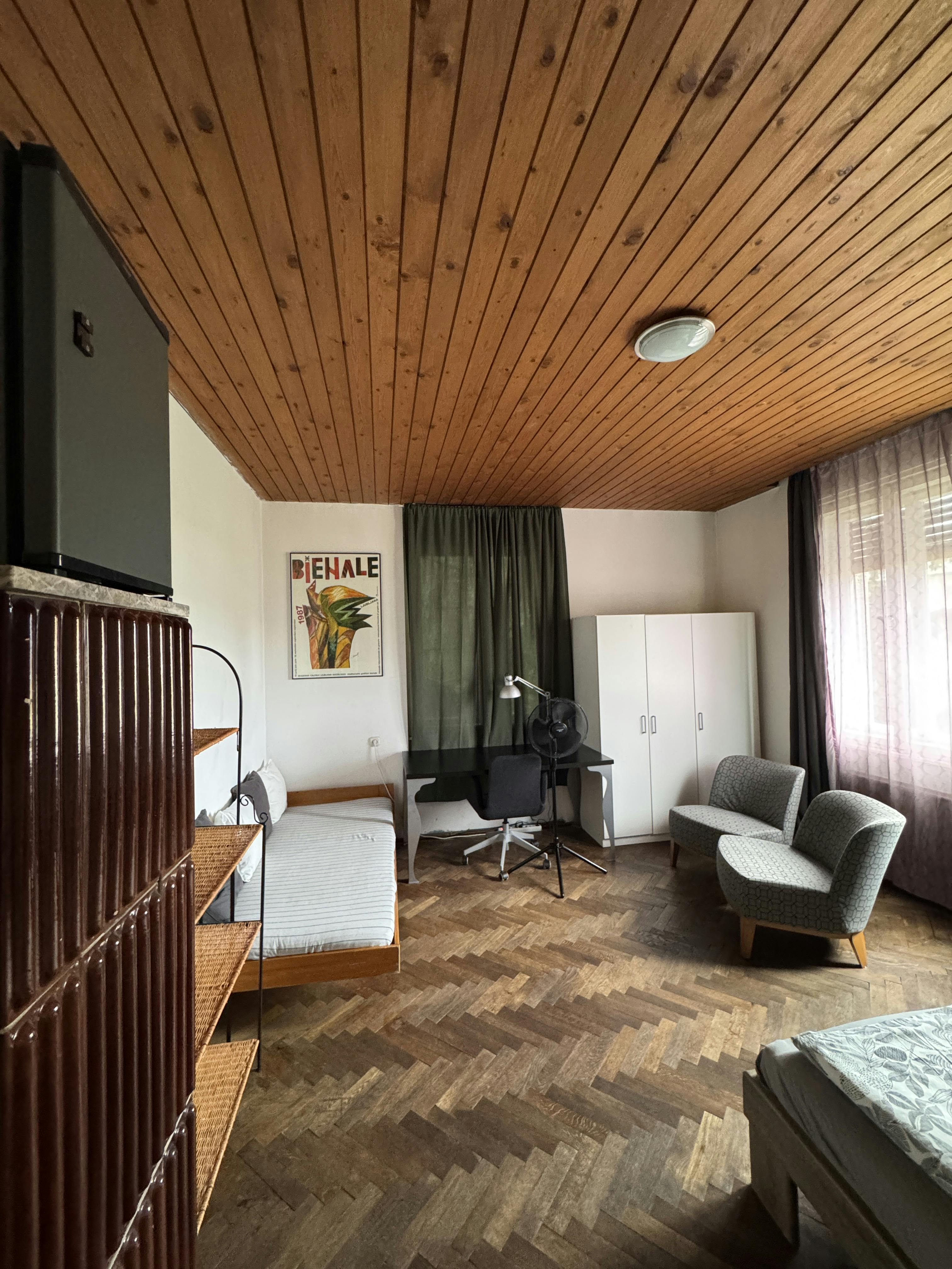 Very spacious and cozy room to rent in a fantastic location in Ljubljana Large, spacious room in a first floor flat in a typical Ljubljana town house. This room is fully furnished with a bed (160x200) and bed (90x200), closet, study desk and lots of shelves for all of your books and trinkets. It has big windows for plenty of natural light and a view of the front garden. Usually it is for 2 people - 260 per person , if you are interested, let me know. 520 is the price if you are alone in the room. You will be sharing the flat with three flat mates. There is a fully equipped communal kitchen (oven, kettle, microwave...) with a balcony for morning coffee, a bathroom and a separate toilet. There is a reliable wi-fi all over the house and the garden. The house has a private, green garden where you can barbecue, sunbathe or just simply relax after a busy day. There is also possibility of parking (behind a gate) and the best thing is the fantastic location. House is literally 2 minutes (walking distance) away from the green oasis of the city, famous Tivoli park and 5 minutes from city center on one side and city bike and bus stations (for more distant destinations) on the other. For your weekend trips around Europe you can just hop on a train which is also in immediate vicinity (Tivoli station). The price of the rent does not include the utility costs (water, gas, electricity, internet, maintance...) which usually average at around 70-80€ per person/month during winter season. In case of any emergencies in the flat, the maintenance crew is always on stand-by. There is also an option of cleaning service....