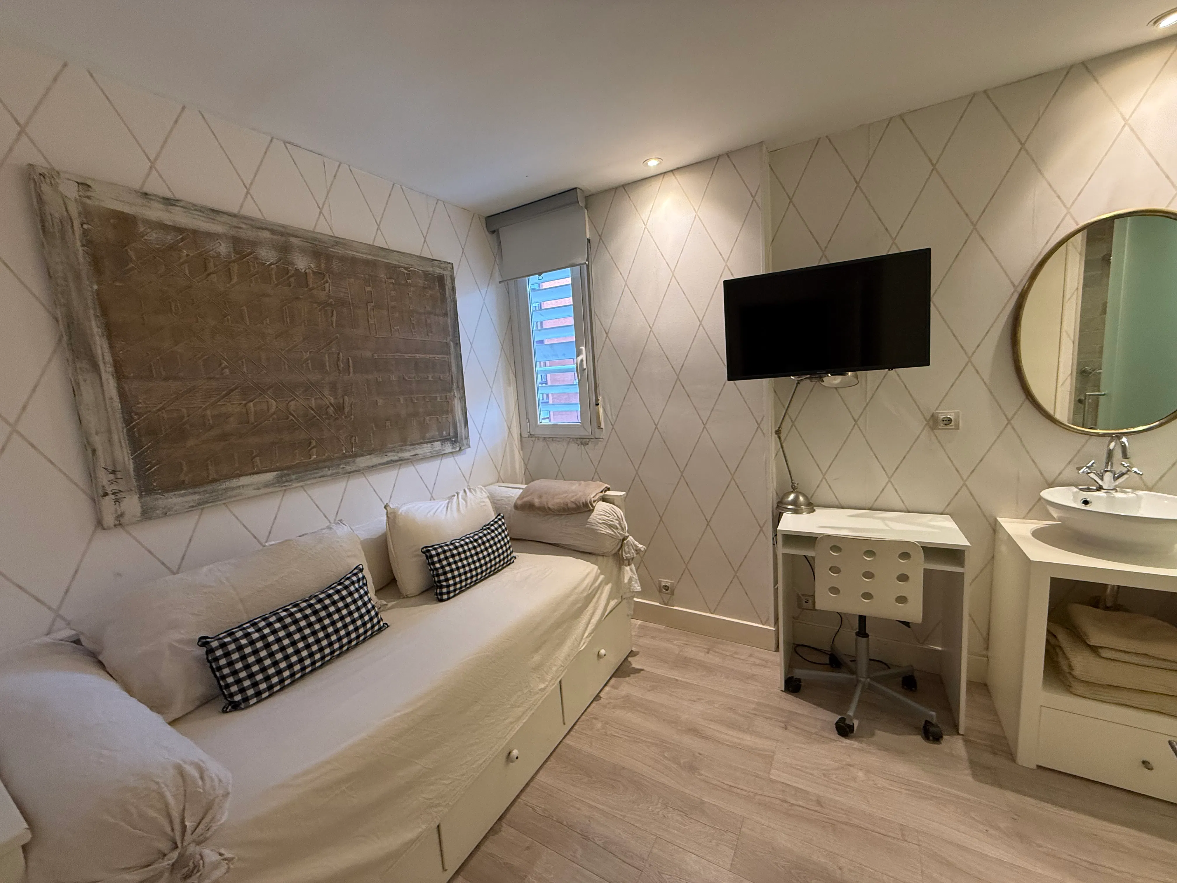 💢💢💢 📞Book and make this exceptional property your new home! This outstanding property has very bright interiors that lighten up the atmosphere of the space. It features beautiful decoration, exceptional furniture, a fully equipped kitchen with everything you'll need, and a pool to relax in, simply put, a lovely long-term stay! This space comes with 4 bedrooms and 3 bathrooms. Your private room has an en-suite bathroom and a 32-inch television. Your private room provides a comfortable bed so you will have all the space you need, some storage space for your wardrobe, and you are free to make it your place to relax and reset! 🌆This property is located in the Atalaya neighborhood, north of Ciudad Lineal in Madrid, which is a peaceful and well-established residential neighborhood. It features tree-lined streets, green spaces, and a strong sense of community. The neighbors often gather for social events and activities. The local shops, cafes, and restaurants contribute to the vibrant and friendly atmosphere, providing residents with convenient access to daily necessities and opportunities for socializing. 🚇Residents enjoy convenient access to local amenities and easy transportation connections to other parts of Madrid. The public transportation options include buses and the Madrid Metro. Several bus lines serve the area, providing convenient connections to different parts of Madrid. The closest metro stations to Atalaya are located in Ciudad Lineal, such as Quintana and Pueblo Nuevo stations. These metro stations offer access to Line 5, which allows for easy travel to other parts of the city 💢💢💢 Please be aware that HousingAnywhere is an online booking platform. Therefore exchanging contact details and offering viewings is not possible. If you would like to reserve this accommodation, send me a booking request or a message and please mention your age and occupation. I look forward to meeting you! 💢💢�...
