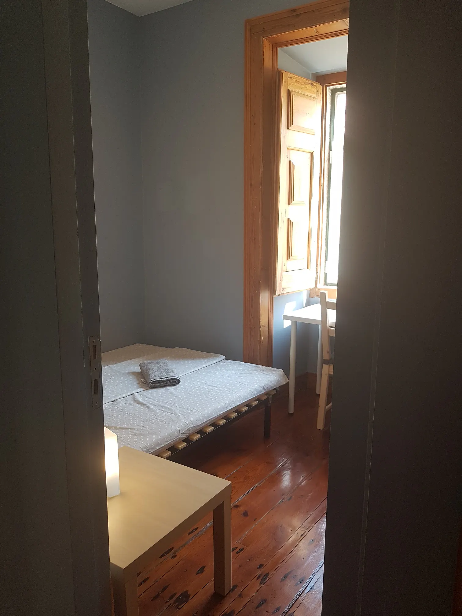 Private small bedroom with single or double bed (available upon request, please inquire prior to booking), Chiado, close to metro Chiado, Convento do Carmo, Lift Santa Justa - a/c, heating, wifi, Large apartment in a small palace, first floor with elevator (to the apartment there are only a few steps), in a residential street, in the heart of Chiado, within walking distance without stairs to the metro station "Baixa-Chiado" with connection to the airport or train stations Rossio ( Train to Sintra) or Cais do Sodre (train to Belem, Estoril and Cascais) and Santa Apolonia (Porto, Evora, Algarve, Madrid) Area to share: kitchen; 1,5 bathrooms Included in the price: WiFi, Kitchen (Microwave, Coffee maker, Toaster, Kettler, Refrigerator, Dishwasher, Dishes and silverware, Cooking basics: Pots and pans, oil, salt and pepper, Stove, NO Oven Weekly included: washing machine, change bedlinen, towels. Heating included between 01.12. - 28.02. Air conditioning available upon request. (Extra fee). Please inquire prior to booking. Rental of bicycles. Please reserve before arrival. Licensed masseur bookable. Massage directly in the apartment or room. Please reserve early. Airport transfer, private city tours, excursions with driver in the area bookable With us the rule applies: Please after use of kitchen or bath a clean and tidy condition again. Or book a cleaning service. Daily or weekly cleaning service available. Please inquire before booking. Moderate smoking is allowed during the day. Free parking for one car or motorbike available on request in a garage near the apartment. Free of charge for stays longer than 3 nights. One night and more parking spaces for 15 euros per night bookable. Deposit for Garage KeyCard: 50 Euro. Please inquire prior to booking Deposit on arrival for keys, final cleaning and damage. Final cleaning is included when the property is returned as the day of arrival. Damage or contamination must be reported immediately and eliminated or paid. Check-in between: 4pm and 1am Check-out between: 6am and 10am Luggage storage on request. Please inquire prior to booking. No visitors allowed – Accepted extra guests/visitors: 20 Euro per day / night Quiet time between 11pm and 8am, Kitchen, Shower available between 7am and 11.30pm, no prelude parties, no parties, no noise, we don't accept drunk or drugs people. Guests who violate our house rules or conditions during their stay, we announce the accommodation agreement without notice. For security and insurance reasons, private electrical appliances and all appliances of the apartment such as light, washing machine, heating, air conditioning, kitchen are to be switched off when leaving the apartment and all doors and windows close. Only one guest can book the accommodation. Bookings from third parties are not permitted. If the other guests do not have the same age and nationality, please specify the age and nationality of all guests before booking. All guests must deposit the copy of a passport or ID card. The maximum number of guests includes children and babies For their safety the entrance and exterior areas of the apartment are monitored by a security service and are alarm-protected All guests must check in and check out at the same time. (Fee for each additional check-in / out or outside regular times : 25 Euro). Early check-in or late check-out is possible upon availability. (Half price per night) At least one adult must speak English, Spanish or German. Otherwise, a check-in is not possible. Only the descriptions and conditions published by us in English are valid....