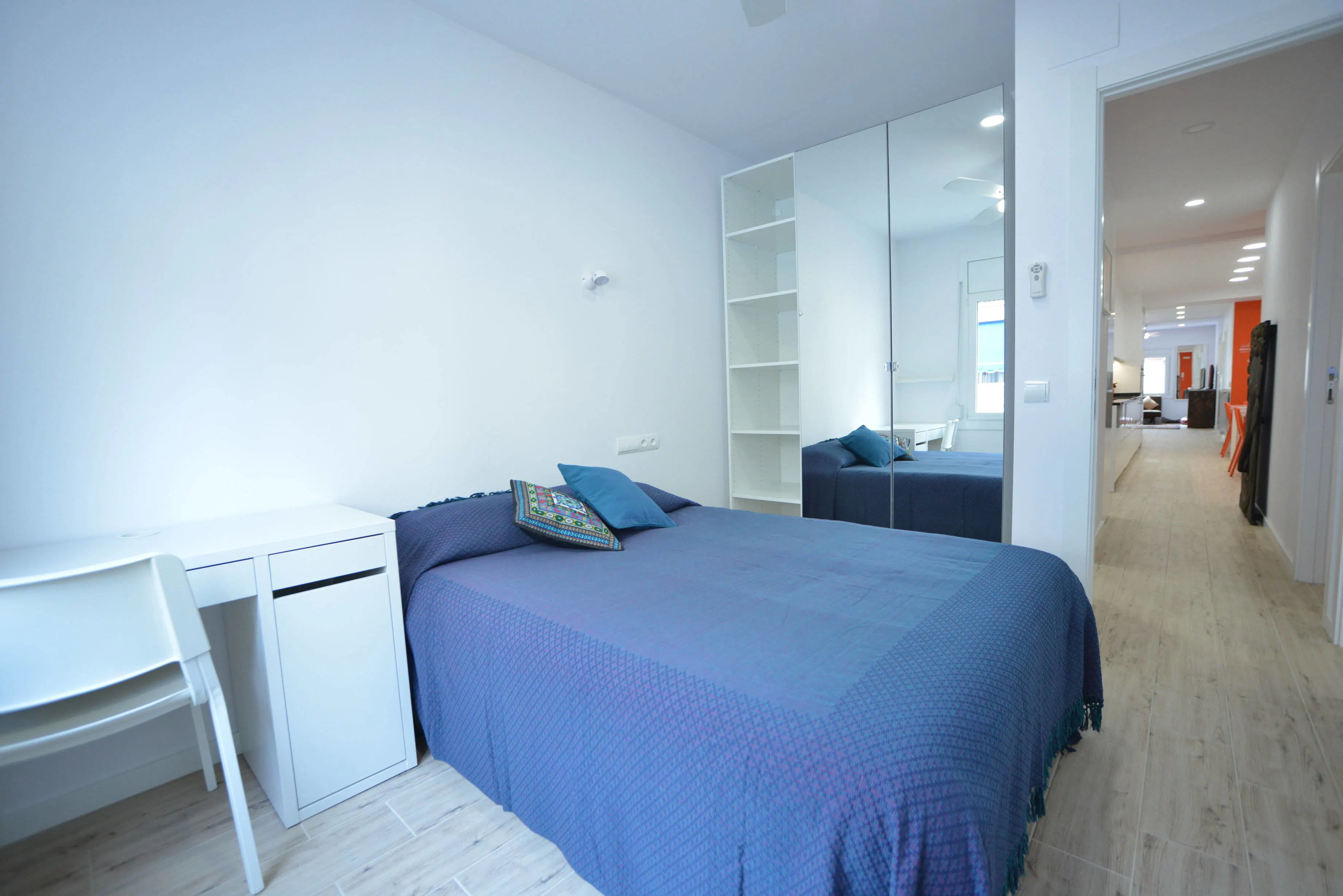 This room in a completely renovated shared flat in Sants-Badal, welcomes young professionals from all around the world who wish to enjoy an interesting multicultural shared life in a clean, organized, respectful and peaceful place. The area is very well connected. This gorgeous exterior 10 m2 bedroom is fully furnished and equipped with a double bed; a wardrobe; a desk, chair and shelving. This bedroom is also equipped with an independent door lock; security safe; ceiling fan; heating unit; lighting; garbage bin; bed linen; set of towels. This gorgeous shared flat is modern, with a sleek decor and large common spaces. It is absolutely fully furnished and equipped for modern life. There is an ample kitchen/dining central area completely equipped for shared living, 3 bathrooms, a laundry room and bright living room. We believe the right selection of tenants is very important so that coexistence is pleasant and interesting. For this apartment, we are looking for young professionals or postgraduates of different nationalities who travel to or live in Barcelona for at least 2 months. We consider people who are clean, orderly, respectful, open-minded, tolerant and who have already had previous experiences sharing a flat. In this way you will know that this is good for all tenants to understand each other, to share conversations and experiences, to create new bonds and to have a good atmosphere in the flat. ❗We only accept master students and workers❗ INVOICES AND SERVICES NOT INCLUDED IN THE MONTHLY RENTAL The monthly rent doesn’t include the following bills and services which will add a fix amount of 100 Euros to the monthly rent: - Utilities: electricity, water, gas, \fiber optic wifi, cable TV and Netflix - Cleaning services of the common areas (11 hours/week) - Common shopping: cleaning and laundry products, toilet and kitchen paper, garbage bags, etc. A one time 150 Euros Fee will have to be paid upon booking of the room which includes: - Legal contract and possibility of extending the contract - Check-in/out - Possibility to move to another room from landlord's portfolio. - Bed-linen, set of towels and duvet included. - 24h/7 days phone number to call for emergency and assistance - Office support, queries, general matters during your stay. Be aware that HousingAnywhere is an online booking platform. Therefore exchanging CONTACT DETAILS and offering VIEWINGS is NOT POSSIBLE. The platform keeps your payment safe until 48 hours after your move-in date. In case the accommodation is not as advertised, you will be entitled to get a refund...