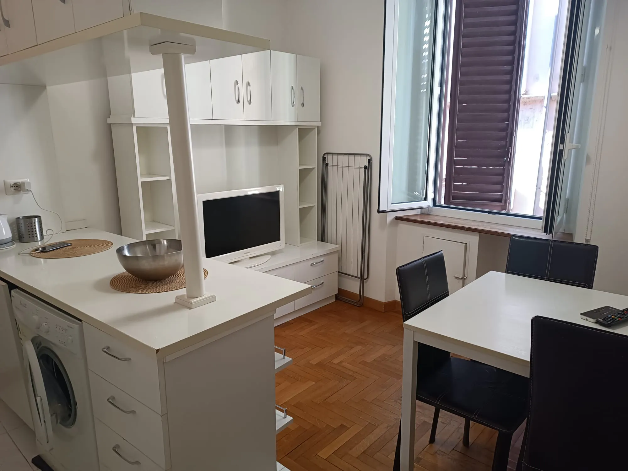 ENG-Renovated apartment with parquet floors and refined furnitures. Fully furnished with custom and modern furniture. Second floor in elegant building. ITA-Appartamento ristrutturato con parquet e finiture di pregio. Completamente arredato con mobili su misura e moderni. Secondo piano di un palazzo signorile. ENG-The apartment consists of a double bedroom, a bathroom with shower, a living room a fully equipped kitchen. ITA-L'appartamento è composto da una camera matrimoniale, una cameretta con letto singolo, un bagno con doccia, un soggiorno con cucina attrezzata. ENG-The historic buildings of Rome not have a lift and are particularly characteristic due to the dark marble of their stairs. The steps are small and to reach the third floor you don't need any physical preparation, just a little good will. ITA-I palazzi storici di Roma non sono dotati di ascensore e sono particolarmente caratteristici grazie al marmo scuro delle loro scale. Gli scalini sono piccoli e per raggiungere il terzo piano non c'è bisogno di nessuna preparazione fisica, basta un po' di buona volontà. ENG-In the heart of the historic center of Rome, a few steps from the most beautiful attractions of the City: Piazza Navona, Pantheon, Campo dei Fiori, Piazza di Spagna, Fontana di Trevi, Colosseo... ITA-Nel cuore del centro storico di Roma, a pochi passi dalle più belle attrazioni della città: Piazza Navona, Roma sotterranea, Pantheon, Campo dei Fiori, Piazza di Spagna, Fontana di Trevi, Colosseo... ENG-Excellent connections also with bus lines, central train station and airports. On request and with an additional cost, it is possible to book a transfer service from/to airports. ITA-Ottimi collegamenti anche con le linee autobus e tram, stazione centrale dei treni e aeroporti. Su richiesta e a pagamento è possibile prenotare il servizio transfer da/a aeroporti...