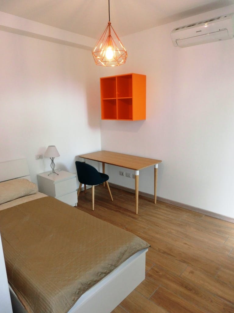 Nice Bedroom Available for Rent! Modern and Spacious Residence! Only students are allowed in this residence! Located in Via Risorgimento, in the center of Milan. This bedroom is calm and fully furnished. Ideal for 1 person! This 350m2 building consists of 11 rooms all with private bathroom and air conditioning, kitchen, laundry with washing machine and dryer, dishwasher, elevator, dining room, and living room, 40sqm terrace, 2 small terraces, private garden. Very quiet residential area just 5 'walk from the Milan metro line 2 green. Present in a radius of 200m from the residence: a supermarket, newsagent, pizzerias, restaurant, grocery, post office, hairdressers and ample free parking right next to the house. Rental Condition: -Rent: 600 euro/month -Utilities: Electricity, Water, Gas, and Wifi are all included! Weekly cleaning of common areas is included in the monthly fee too. -Deposit: 1200 euro (Paid one time) -When you apply please state the university you'll be attending -Please load your ID in the chat in one of the first messages Please be aware that HousingAnywhere is an online booking platform. Therefore exchanging contact details and offering viewings is not possible. If you would like to reserve this accommodation, send me a booking request or a message and please mention your age and occupation. I look forward to meeting you! --------- Residenza di 11 stanze tutte con bagno privato interno e condizionatore autonomo, cucina fornita, lavanderia con lavatrici e asciugatrice, lavastoviglie, ascensore,sala da pranzo e salone, terrazzo di 40mq, 2 terrazzini, giardino privato. Pulizia settimanale delle zone comuni, wi-fi tutto compreso nel canone mensile. Zona residenziale molto tranquilla a soli 5' a piedi dalla metropolitana di Milano linea 2 verde. Presenti in un raggio di 200m dalla residenza: un supermercato, edicola, pizzerie,ristorante, alimentari, posta, parrucchieri e ampio parcheggio gratuito proprio adiacente alla casa...