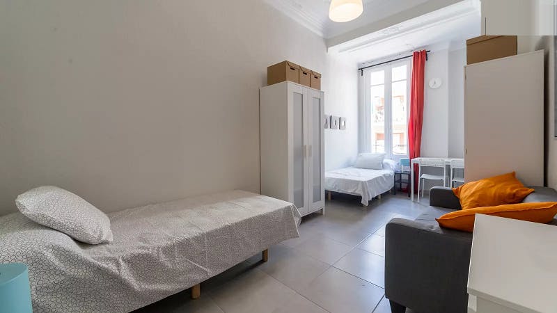 Modern room for rent in 5-bedroom apartment in L'Eixample There are rooms for rent in this chic 5-bedroom, 3-bathroom apartment on Carrer de Sueca in L'Eixample. The kitchen has been recently renovated and is well-equipped with all the modern appliances you need to cook up a storm, including 2 refrigerators, an oven and 4-burner stove. There is also a table and chairs in the kitchen so you can sit down for a meal with your flatmates. If you don't feel like cooking you can always grab a bite to eat at one of the many great restaurants within a 10-minute walk of this apartment. You'll also find the Mercat de Russafa nearby so you won't need to go far to find some great produce. If you're studying, the University of Valencia is within a half-hour bus ride of this apartment. Property type: apartment Floor: 5th Elevator: yes Number of bathrooms: 3 (2 ensuites) Transportation Bus 183 is available at a stop just around the corner from this apartment. The Estació de Bailén Metro station is just over a 10-minute walk away and services line 7. **The rent is monthly, so regardless of the day you enter and leave, you pay a full month. **El alquiler es mensual, por lo que independientemente del dia que se entre y se salga, se paga mes entero. 🕑 CHECK-IN TIMES: - Monday to Friday: 09:00h to 14:00h and 16:00h to 20:00h - Saturday: 09:00h to 14:00h - Sunday & Bank Holidays: Only opened the first Sunday of each month Please be aware that HousingAnywhere is an online booking platform. Therefore exchanging contact details and offering viewings is not possible. If you would like to reserve this accommodation, send me a booking request or a message and please mention your age and occupation. I look forward to meeting you...