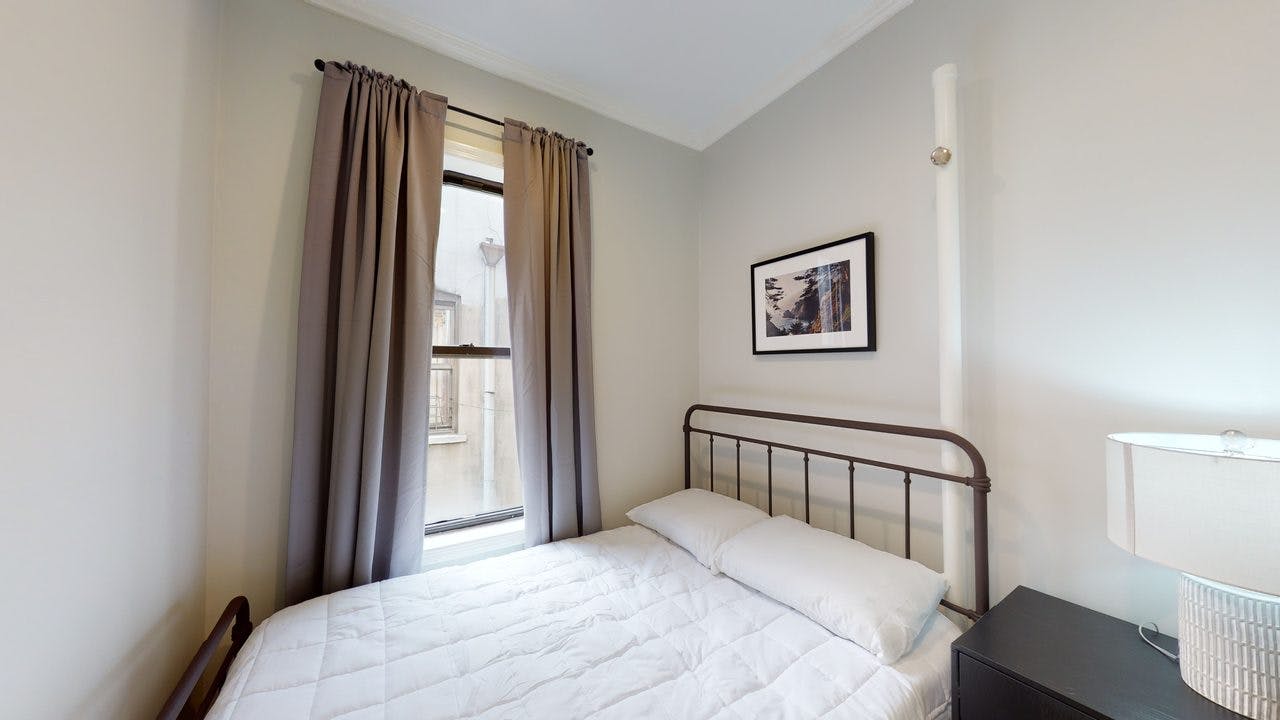 This 61 square footage room on New York City's Hamilton Heights is a clean, charming and glossy room in a 4-bedroom apartment. The furnishing status may, or may not be adjustable for an additional fee, upon a request, depending on the availability. About this Home Modern and sleek, this super-clean and newly renovated Manhattan apartment is a perfect home for a group of college roommates attending one of the nearby universities. At 851-square-feet, this four-bedroom, one-bathroom, shared apartment features exposed brick interior walls, high ceilings, radiant hardwood floors, radiator heating, recessed lighting, and an LG all-in-one washer-dryer combination. Cozy, sunlit bedrooms provide enough space for either queen-size or full-size beds and additional furniture like nightstands. The master bedroom can accommodate a personal workspace and offers a large closet. The tile-floor kitchen boasts new stainless steel appliances, including a dishwasher and microwave, beautiful countertops, and sophisticated cabinets and drawers. A compact eat-in living area can support a sofa, coffee table, TV stand, and dining table with four chairs. The bathroom features a walk-in shower and bathtub combination with a window for ventilation. Located in Upper Manhattan, Hamilton Heights is one of the best residential neighborhoods in West Harlem and contains the historic sub-neighborhood of Sugar Hill. This neighborhood is bordered by St. Nicholas Avenue on the east, West 135th Street on the south, Henry Hudson Parkway on the west, and West 155th Street on the north. One of the focal points of the Harlem Renaissance and home to many affluent African-Americans in the early 1900s, Hamilton Heights today is a multicultural neighborhood with bustling commercial districts along Broadway and Amsterdam Avenue. Known for having some of the best specimens of Victorian-era architecture in New York City, Hamilton Heights is home to numerous brownstones and other rowhouses, as well as immaculately-preserved low and mid-rise brick apartment buildings. Tree-lined, pedestrian-friendly streets run perpendicular to commercial thoroughfares and are excellent for those whose preferred mode of transportation is a bicycle. With numerous New York City Subway stations along Broadway and St. Nicholas Avenue, Hamilton Heights is one of the best neighborhoods in Upper Manhattan for commuters. This neighborhood also offers scenic urban green spaces, such as Riverbank State Park, where you can bring the kids and enjoy a plethora of outdoor amenities. Situated on the fourth floor of a five-story brick apartment building on a quiet, residential street, this Hamilton Heights apartment is conveniently located less than five blocks from Riverside Park. A short walk from an assortment of retail and restaurant options along Broadway, a two-minute walk will get you to 145th Street subway station for the 1 Broadway–Seventh Avenue Local, which will take you all the way south to Battery Park. This apartment also includes WiFi and a flat-screen TV in the living area. Book a tour before this apartment is gone! Your safety and comfort are our top priorities! To ensure it, we ask all our new members to complete a background and credit check and electronically sign a residency agreement. You'll need to share your ID and Social Security Number (for those in the US) with us. We'll shoot over the agreement after you book, and we kindly ask you to sign it quickly to guarantee your room. For your credit, we're looking for scores above 550-650, depending on your city and we'll need a clean criminal record too (this doesn't apply to DC). If you meet all the requirements, you will receive the agreement which you need to sign within 24 hours. We do not provide towels, linens, or other similar amenities. Guests are required to bring these items with them. We hope this setup meets your needs for an extended stay, and we look forward to hosting you! The descriptions may not always reflect the most up-to-date details. If a specific feature or amenity is important to you, kindly reach out for confirmation....
