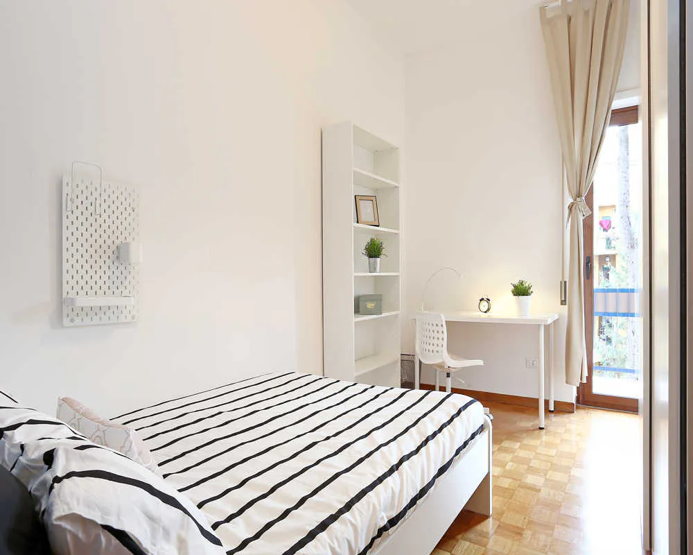 Discover this cozy room in the vibrant *Trionfale / Gemelli / Battistini* district, perfect for students or young professionals. This room measures 13 square meters and features a private balcony. The apartment includes 6 rooms and 2 bathrooms, with amenities such as an *elevator* , *dishwasher* , *washing machine* , *television* , *WiFi* , *oven* , *heating* , and *microwave*. Getting around is easy with nearby options like *Cavalletti dal 1951 - Trionfale* (1 min walk) for food and drink, and *Casa Viola Padel Club* (1 min walk) for health and wellness. Join a community of like-minded individuals in this welcoming space. Ideal for those looking for convenience and comfort! Ready to move in? Schedule a viewing today! Current tenants: 2: 26, Female, Student 3: 27, Female, Student 4: 29, Female, Student 5: 21, Female, Student 6: 28, Female, Student Please be aware that HousingAnywhere is an online booking platform. Therefore exchanging contact details and offering viewings is not possible. If you would like to reserve this accommodation, send me a booking request or a message and please mention your age and occupation. I look forward to talking to you! CONTRACT Please, note that to all our listings we apply fortnightly contracts. This means that If you check-in during the first half of the month, you will be charged for the full month. If you check-in during the second half of the month, you will only be charged for the second half. The second half of the month starts on the 16th. If you check-out during the first half of the month, you will only pay until the 15th of that month. If you check-out during the second half of the month, you will be charged the full month....