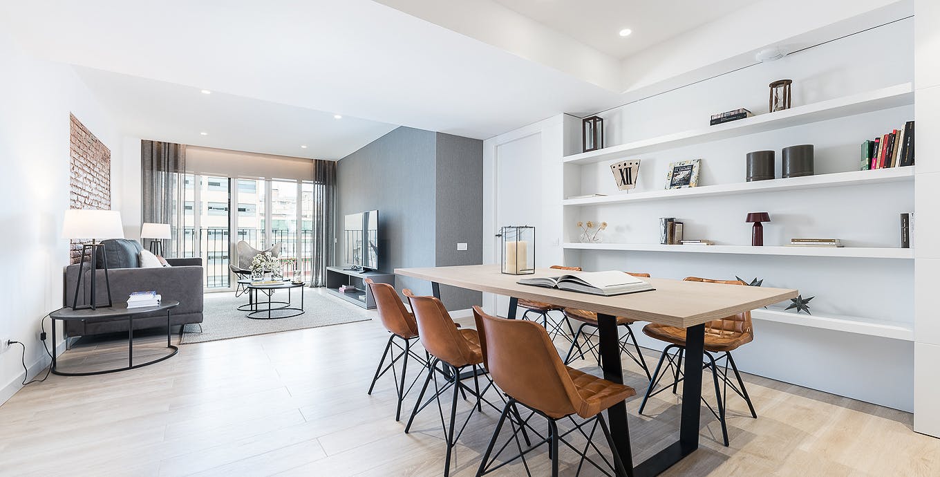 Promos by length of stay in the final price: -Booking + 4 months: 5% discount -Booking + 9 months: 7,5% discount -Booking + 12 months: 10% discount Please contact us to apply for the discount in your booking request! - Utilities included in the price up to 120€ - 180€ depending of the apartment. - Some apartments pets are allow by request. There is an extra charge for pets. Please contact us to know the supplement and availability! -- This apartment is in the Living Rosselló building, a residence that provides a new way of living: your home, your workspace, and your community all in one place. It is located in the heart of La Antiga Esquerra de l'Eixample, one of the most emblematic neighborhoods in central Barcelona, and an exclusive area where you live surrounded by a wide variety of gastronomic and commercial offerings. In addition, just a short walk from this building you will find top sights like the Passeig de Gràcia and Antoni Gaudí's emblematic Casa Batlló. Learn more about your neighborhood. This apartment is in a classic 19th-century building that has been completely renovated but still maintains historical architectural elements such as the Catalan vaulted ceilings with wooden beams and oak wood floors. Inside the apartment itself, there is a contemporary aesthetic and an open-concept floor plan that balances style with comfort and maximizes space. In the Living Rosselló building, you can enjoy expertly curated common areas where you will feel a sense of belonging among like-minded professionals. This building stands out for its traditional facade and for having a private 350 m2 garden with seating for relaxing, dining, or working. This space is an oasis in the heart of Barcelona and is exclusively available for our residents to enjoy. On the ground floor, there are various shared spaces such as a meeting room and a coworking area which are perfect for working from home, and a lounge where you can relax after a long day. There is also a gym, equipped with Technogym equipment to accommodate any fitness routine. In the outside area, you will find a spacious garden which comes fully furnished so you can comfortably enjoy a breath of fresh air. Points of Interest: Transportation: The metro stations of Provença (220 m) and Passeig de Gràcia (200 m) with direct lines to the heart of the city, are within a few minutes walk. The building is also just a short walk away from Barcelona’s main avenues, Passeig de Gràcia (550 m) and Avenida Diagonal (450 m). Culture: In this neighborhood, the streets are lined with buildings featuring the classical architecture that is emblematic of Barcelona's Eixample. Nearby are La Pedrera (also known as Casa Milá) and Casa Batlló by the world-renowned architect Antoni Gaudí. The gardens of Palau Robert are also in close proximity to the building; serving as an ideal escape from the hustle of the city. Shopping / Dining: You can find a wide variety of fresh produce and cozy tapas stalls in the Mercado del Ninot (600 m). The surrounding area also offers a diverse array of dining options, such as on Calle de Enrique Granados (240 m) which is lined with restaurants and bars. There is also no shortage of boutiques, bookstores, and supermarkets in this neighborhood. Utilities Relax - We take care of all bills, including broadband, water, gas (up to 100€) and electricity (up to 100€) , so you don’t have to. 24/7 Service Our team is on-call 24/7 for whatever you need to guarantee you complete peace of mind. Cleaning services Weekly cleaning service included. Verify the type of services. The rent payment includes the applicable VAT in each case....