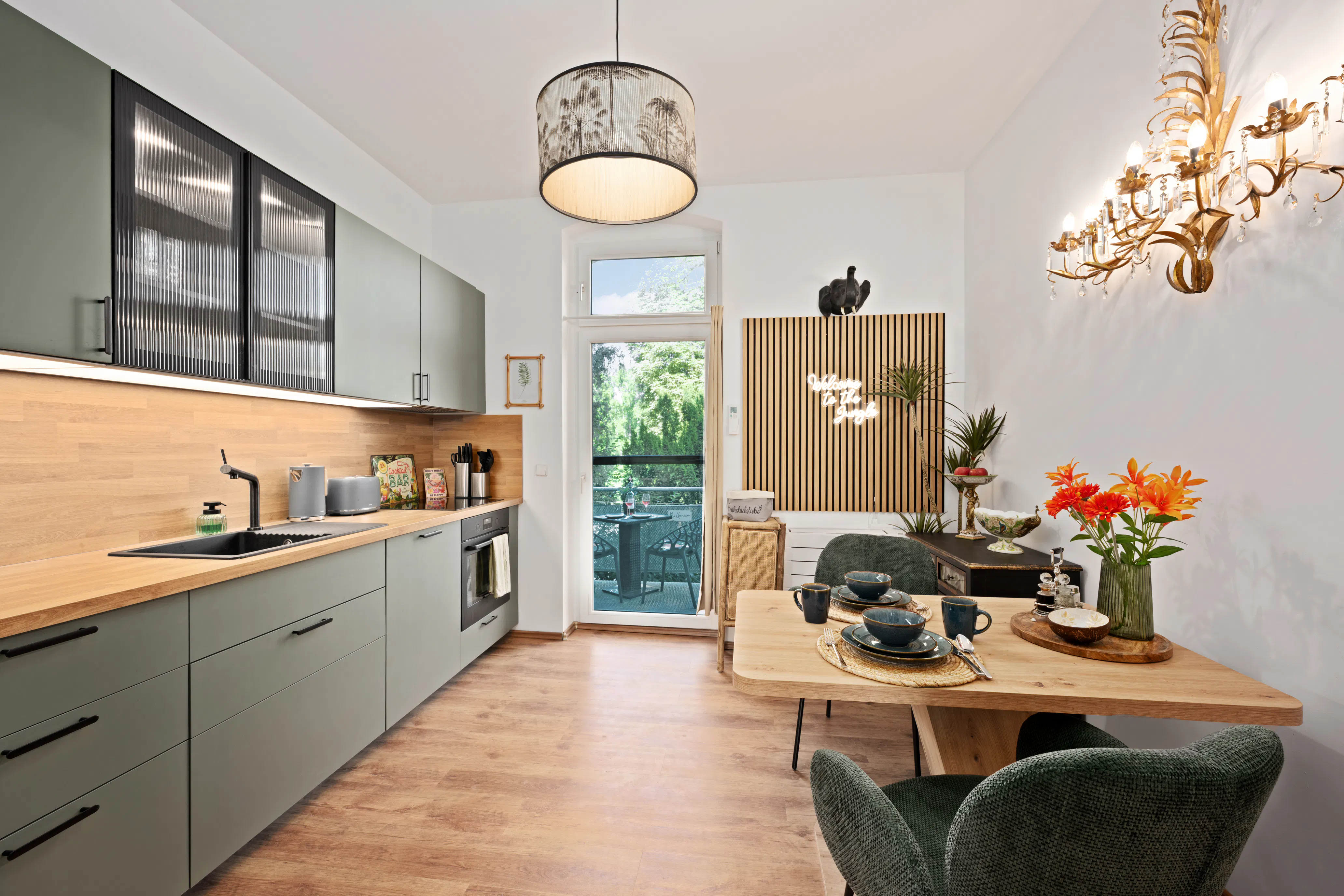 Die moderne Unterkunft “Jungle-Suite” liegt ruhig gelegen im Grünen direkt an der Saale unweit des historischen Marktplatzes von Halle (Saale). Die hochwertig und stilvoll eingerichtete 50m2 große Suite verfügt über ein Kingsizebett, Flachbild Smart-TV, gemütliche Sitzbereiche, einen Home-Office-Arbeitsplatz sowie kostenfreies WLAN. Ihnen steht zudem eine geräumige, voll ausgestattete Küche („löffelfertig“) mit modernen Küchengeräten (wie Geschirrspülmaschine sowie Backofen mit Induktionsfeldern + Mikrowelle) und einem Kaffeevollautomaten zur Verfügung. Das moderne Bad verfügt über eine großzügige Regendusche. Die hochwertige Ausstattung wird durch eine Klimaanlage, Waschmaschine + Trockner sowie einen Balkon mit Blick ins Grüne und auf die Saale komplettiert. Die Wohnung eignet sich perfekt für einen längeren Aufenthalt bspw. zu Zweit oder für Dienstreisende bzw. Projektmitarbeiter. Fühlen Sie sich ganz wie Zuhause und entspannen Sie vom Alltag. Zu der Wohnung gehört auch ein kostenfreier Stellplatz für Ihr Auto...