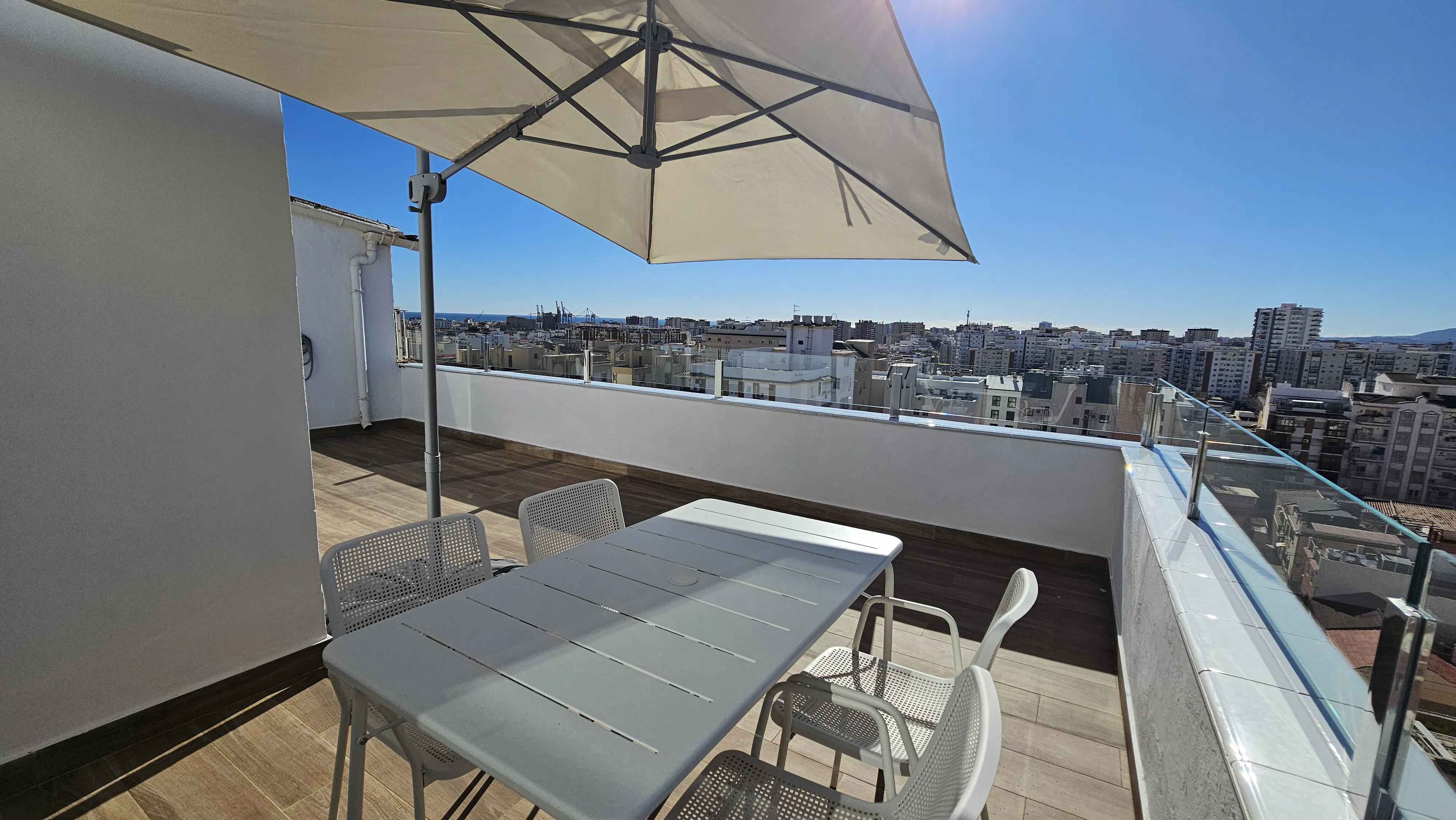 Temporary rental penthouse with large terrace – fully furnished HABITREND offers this modern and fully furnished penthouse for temporary rental, ideal for expats, professionals and remote workers, with a minimum stay of 2 months and a maximum of 10 months. This bright, fully exterior apartment features 1 double bedroom with built-in wardrobe, 1 bathroom with shower, and a home office area equipped with a height-adjustable desk and ergonomic chair. The living room with terrace access is furnished with a 40” TV and connects to a fully equipped open-plan kitchen including oven, microwave, fridge, coffee machine, dishwasher and washing machine. The property’s main highlight is its 25 m2 south-facing private terrace, furnished with an outdoor dining table and offering open city views, perfect for outdoor living. ✅ Air conditioning throughout the apartment ✅ High-speed fiber optic internet included ✅ Water included in the price ✅Fully furnished and move-in ready ✅ 🐾 Pets allowed ✅Bed linen, towels and kitchenware ❌ Electricity consumption not included 📅 Available from February onwards For other dates or longer stays, please consult availability and price....