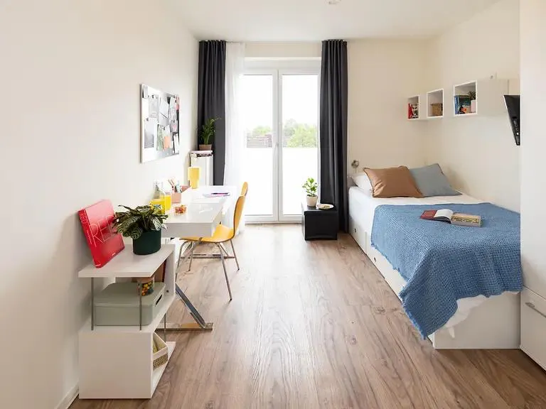 The student residence is located in Wandsbek, on Hammerstraße 10, within walking distance of the U-Bahn and S-Bahn station Wandsbeker Chaussee. The area is surrounded by supermarkets, shopping facilities, restaurants, and parks. Thanks to the Yugo concept, everything is taken care of! The apartment comes fully furnished, including a kitchen and bathroom, internet, a desk, and plenty of storage space. In addition, the building offers shared spaces such as a common room, study room, and a laundry room with washing machines and dryers....