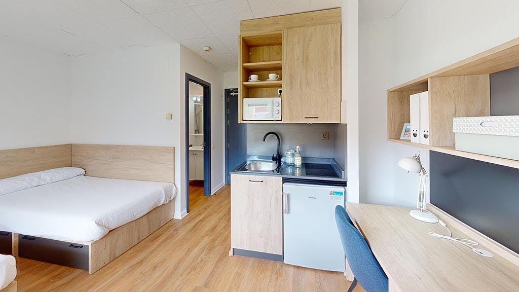 The residence offers a range of furnished studios and shared rooms, ranging from 9 m² to 18 m², along with additional facilities