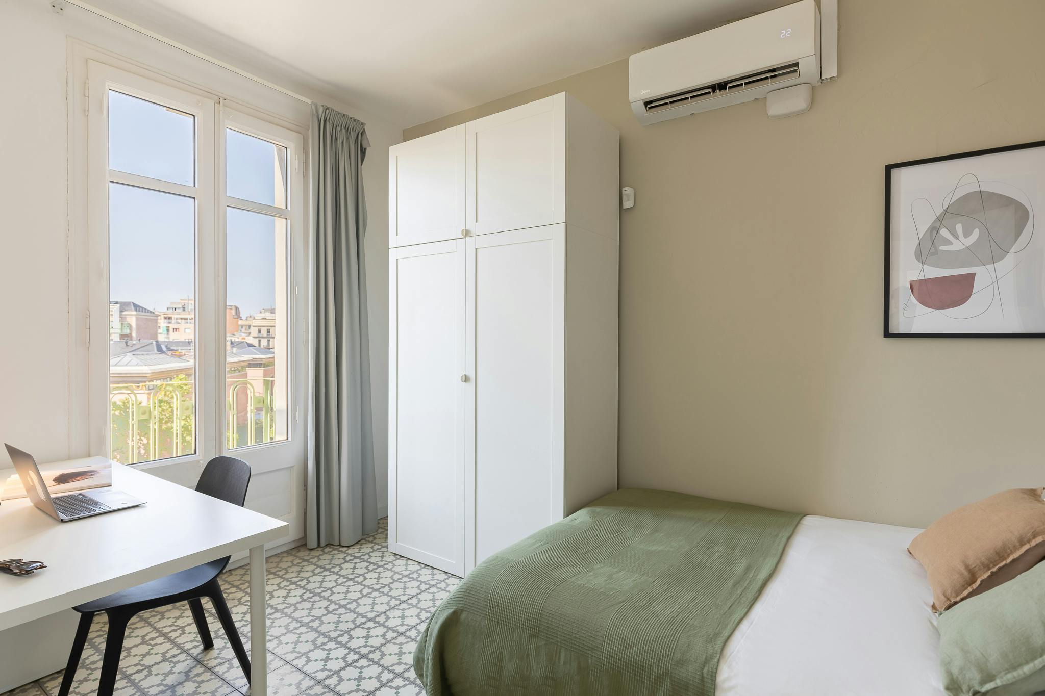 💢💢💢 🔸The usual booking period is from September to December and from January to May. For shorter stays, please contact us. The administration fees have to be paid 48h after the creation of the booking. 🔸The monthly rent varies depending on the length of the stay. ✔Booking 1- 2 months: 1059€ ✔Booking 3- 8 months: 959€ ✔Booking + 9 months: 908€ Do you like yoga and martial arts? Well, you're in luck because in this room you'll be able to do any kind of "modern" practice without hitting your head on a shelf or a corner of the bed on your little toe (we know, it hurts a lot). In addition to the space, this room offers you amenities like a desk so you can give free rein to your ideas and enough storage space to keep all your stuff and the occasional state secret. Fortnightly cleaning of common areas is included 🔸Bills included up to 80€ Please be aware that HousingAnywhere is an online booking platform. Therefore, exchanging contact details and offering viewings is not possible before the booking. If you would like to reserve this accommodation, send me a booking request or a message, and please mention your age and occupation. I look forward to meeting you! 💢💢💢 02.01.H02...