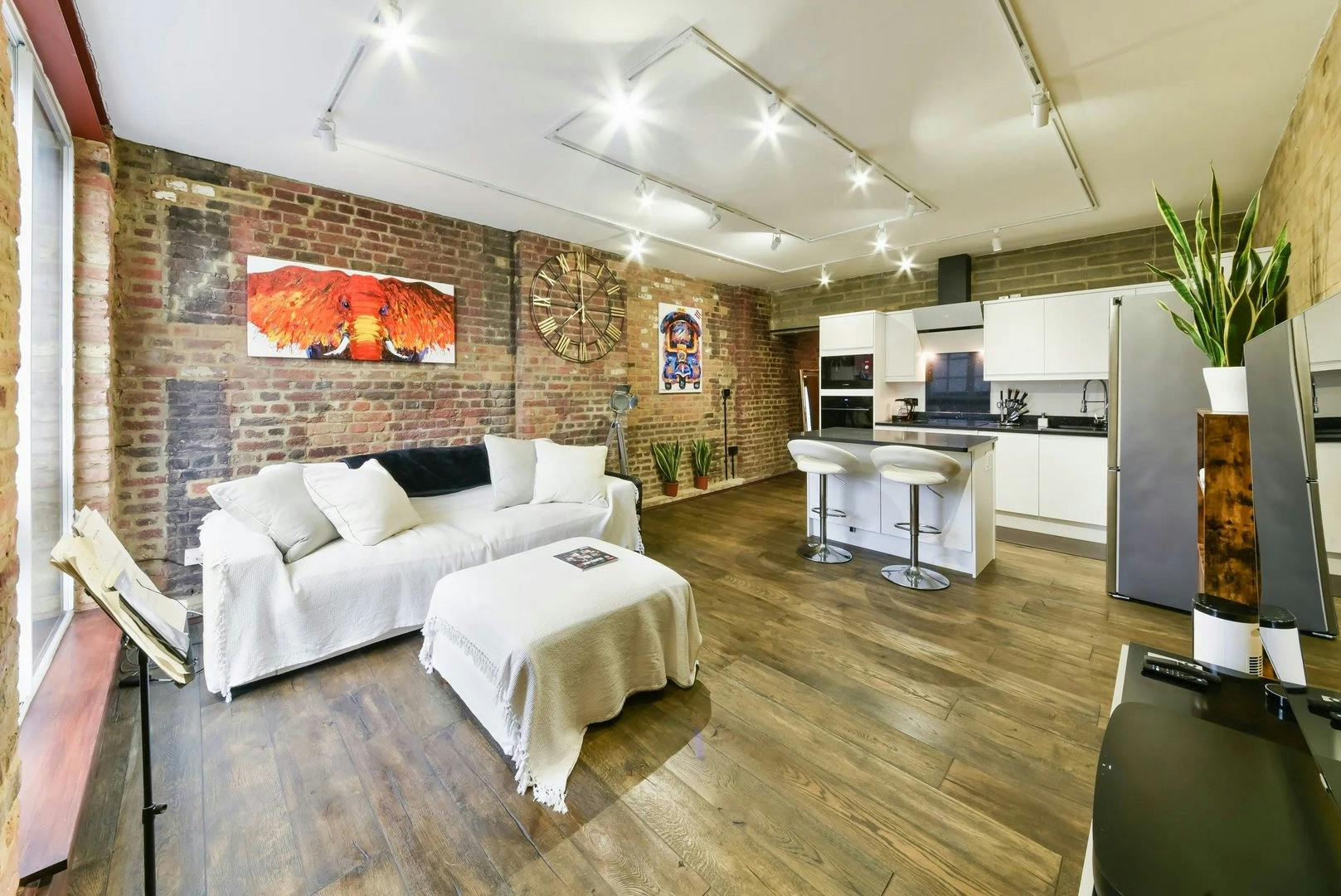 Welcome! Located in the vibrant Bermondsey Village, just a short stroll from Tower Bridge, Tower Bridge, and The City, this 50m2 apartment is on the 3rd floor with elevator access, offering a perfect base for both business and leisure stays. The stunning living space boasts a unique industrial charm, featuring exposed brick walls adorned with striking artwork and a large, eye-catching wall clock. The open-plan design seamlessly integrates the living room and kitchen, creating a spacious and inviting atmosphere. Relax on the cosy sofa while enjoying the warm ambience of natural light flooding through the large windows. A 65-inch smart TV is available with a connected sound system for enhanced audio quality. The modern kitchen has sleek white cabinetry, high-end appliances, and a convenient breakfast bar with stylish stools, making it perfect for preparing meals or enjoying casual dining. The bedroom contains a comfortable queen-size bed with hotel-quality linens to ensure a good night's sleep and multiple storage spaces. The bathroom has all the amenities you will need to freshen up, including fresh towels and toiletries for your convenience. Please note: There are ongoing construction works in the complex area, taking place Monday to Friday during standard working hours. As a result, some noise may be heard during these times. We appreciate your understanding and want to ensure you're aware in advance. The apartment is always professionally cleaned for your comfort. Enjoy your stay...
