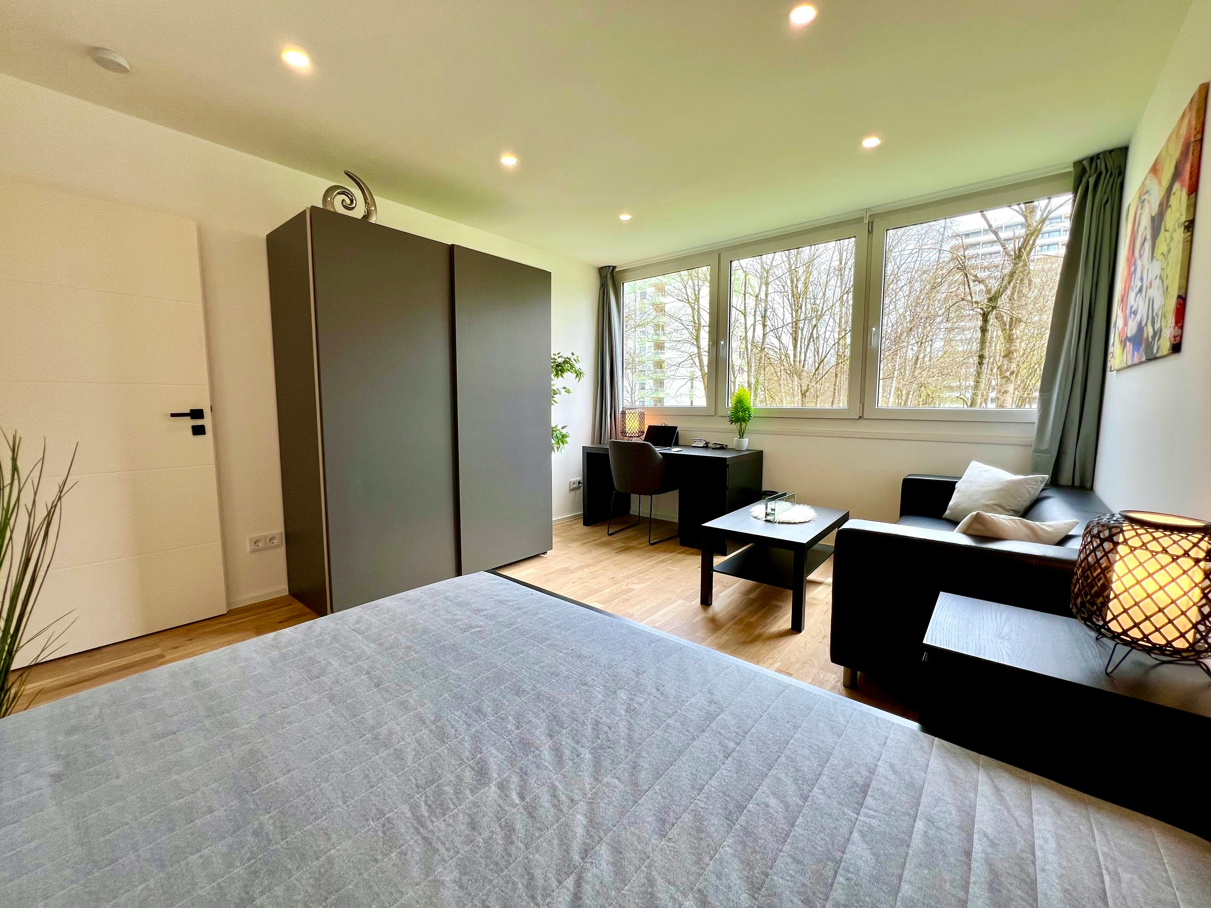Virtual Tour: https://my.matterport.com/models/pfPBGwGCaXb?section=media Das neu und hochwertig ausgestattete Zimmer ist Teil einer 93 qm großen neu renovierten Wohnung in München, Bogenhausen / Johanneskirchen. Das komfortabel eingerichtete Zimmer verfügt über folgende brandneue Möbel: - 140 cm breites Bett mit verstellbaren Lattenrosten und mittelfester Schaumstoffmatratze mit Matratzenschoner - Großer Kleiderschrank - Schreibtisch mit Schubladen und Sessel - Teppich mit kurzem Flor - Dekorative Wandbilder - Vorhänge und Fensterladen Die auf den Bildern gezeigten Tisch- und Stehlampen, Pflanzen und Büromaterialien dienen nur der Veranschaulichung und sind nicht im Mietpreis enthalten. Der großzügige Flur vermittelt einen sehr einladenden Eindruck und bietet Zugang zu allen Räumen der großen Wohnung. Die Küche bietet alle erdenklichen Annehmlichkeiten: - Sämtliche Küchengeräte wie Teller, Gläser, Kochgeschirr usw. - Wasserkocher und Toaster - Geschirrspüler - Wäschetrockner - Induktionskochfeld, Backofen und Dunstabzugshaube - Kühlschrank - Zusätzliche LED-Beleuchtung der Arbeitsflächen Die Wohnung verfügt außerdem über zwei neu eingerichtetes Badezimmer mit Waschbecken und LED-Spiegel, einem Handtuchheizkörper, einer Dusche, Waschmaschine und einer Toilette. Durch die beiden voll ausgestatteten Bäder verteilt sich der „morgendliche Verkehr“ und es herrscht ein harmonischer Start in den Tag! Natürlich haben Sie auch unbegrenzten Zugriff auf das superschnelle WLAN mit 100 Mbit/s. Zu Ihrer eigenen Sicherheit und Ihrem Komfort wurde in der Wohnung, einschließlich des Briefkastens, ein Schließsystem installiert. Die Wohnung ist mit allem ausgestattet, was Sie brauchen, und perfekt vorbereitet, damit Sie einziehen und sich sofort wie zu Hause fühlen können. Im Haus gibt es auch einen separaten Wasch- und Trockenraum, welcher jeder nutzen kann. In der Miete sind bereits alle Kosten für die Nutzung Ihres Zimmers und aller Gemeinschaftsräume enthalten (keine versteckten Kosten!). Die Mindestmietdauer des Zimmers beträgt 6 Monate. Die Immobilie finden Sie in lebendiger Gegend in München Bogenhausen. Zu Fuß erreichen Sie verschiedene Ärzte, Supermärkte, Restaurants, Bäckereien und ein Einkaufszentrum. Außerdem gibt es verschiedene Fitnessstudios, Grün- und Parkanlagen, Bars und Modegeschäfte. Sport und Erholung kann auch gerne im Freien stattfinden - die Wohnung grenzt an einem Park, welcher im Sommer auch zum Grillen einlädt. Alles befindet sich in Ihrer unmittelbaren Nähe - alles innerhalb von maximal 5 Minuten zu Fuß. Darüber hinaus überzeugt die Wohnung durch die perfekte Anbindung an den öffentlichen Nahverkehr. Innerhalb von 8 Gehminuten ist man an der S-Bahn-Haltestelle „Johanneskirchen“ und in 15 Minuten in der Münchner Innenstadt (Marienplatz). Von dort aus ist man auf der S-Bahn-Stammstrecke und hat Zugang zu allen U-Bahnen, z.B. U3/U6 (Richtung Garching / Universität sowie südlich nach Großhadern oder Isar / Tierpark) sowie zu Trambahnen, Bussen, etc. Nur 5 Gehminuten von der Wohnung entfernt finden Sie auch die (Nacht-)Bushaltestelle „Regina-Ullmann-Straße“, welche Ihnen Anbindung an die Buslinie 50 sowie Nachtlinie 72 bietet. München verfügt über ein fantastisches öffentliches Verkehrsnetz, sodass man jeden Teil der Stadt leicht erreichen kann. Stell Dich in deiner Nachricht bitte kurz vor und erzähle mir ein wenig über Dich und dein aktuelles Leben. Bitte gib auch an, welches Zimmer für dich interessant ist. Besichtigungstermine werden auf Wunsch nach schriftlicher Anfrage unkompliziert und flexibel ausgemacht. Die Grundrisse sowie Einrichtungsgegenstände der einzelnen Zimmer kannst du gerne dem Grundriss entnehmen. Die Deko inkl. Lampen und TV ist nicht Teil der Zimmer, sondern dient der Veranschaulichung. Wir freuen uns von Dir zu hören....