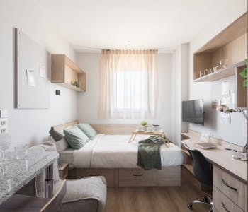 Studera, arbeta, skapa kontakter och känn dig som hemma.Utforska fler studentbostäder i Madrid🏡 Stylish Student Residence in Madrid's Plaza de España! 🛏️ About your private space: 🛏 Single exterior studio 120 cm bed Located on floors 0, 1, 2, or 3, with natural light and exterior exposure Kitchenette with microwave, sink, and refrigerator (NO kitchen with stoves) Study area with desk and ergonomic chair Smart TV Modern and functional private bathroom High-speed Wi-Fi 🍳 About the residence: This residence offers a range of amenities to enhance your university experience. Enjoy access to coworking spaces for focused study sessions, a gym to stay active, a cinema room for entertainment, and social lounges to connect with fellow students. Additional facilities include laundry services, secure bike parking, and 24/7 security to ensure your comfort and safety. 📍 About the area: Located in the heart of Madrid, just steps away from the iconic Plaza de España, this residence offers unparalleled access to the city's vibrant cultural scene. You'll find a variety of restaurants, cafes, shops, and cultural attractions nearby, providing a vibrant and enriching environment for students. Ready to embark on your academic journey in Madrid? This residence provides the perfect blend of comfort, convenience, and community to support your student life. HousingAnywhere is an online booking platform. Therefore, exchanging contact details and offering viewings is not possible before the booking. We look forward to meeting you! 📌 Images are illustrative and may not exactly reflect realit...