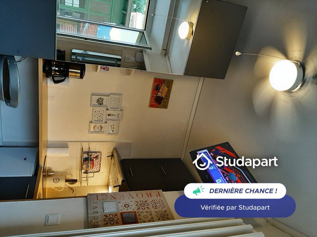 Ancienne chambre de bonne rénovée en studette pour 1 personne. Logement étudiant. Dans un ancien palace avec parc et gardien. Stationnement possible. En face de la mer. Vue colline. Composée d'une cuisinette (plaques induction/ micro onde / frigo/hotte...) une salle de douche, un lave linge/ TV / lit bonne literie armoire. Updated on 16/08/202...