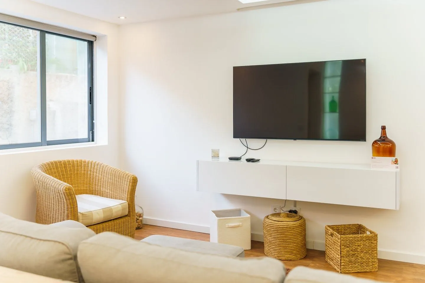 Welcome to my apartment! This delightful 95 m2 property offers a comfortable and inviting space for your stay in this relaxing city. It is located on the -1 floor and has a lift access. This home features an open, modern living area that makes it immediately easy to feel at home. The living room is a great place to unwind with a TV after a day of exploring the city. The open-plan kitchen is perfect for enjoying meals together while socializing, and it comes fully equipped with cookware and utensils. For your convenience, you’ll also find a cosy sunroom with a washing machine and laundry essentials. The first bedroom offers a comfortable queen bed, a work desk, ample storage space, and a lovely balcony. The second bedroom is perfect for friends or family, featuring two single beds, plenty of storage, a private balcony, and blackout for a restful night's sleep. It also includes an en-suite bathroom for added privacy. Just down the hall, the shared bathroom is stocked with fresh towels and complimentary toiletries to make your stay hassle-free. All the windows are fitted with reflective film to ensure privacy and reduce the temperature. Cleaning will be done before your anticipated arrival. Enjoy your stay...